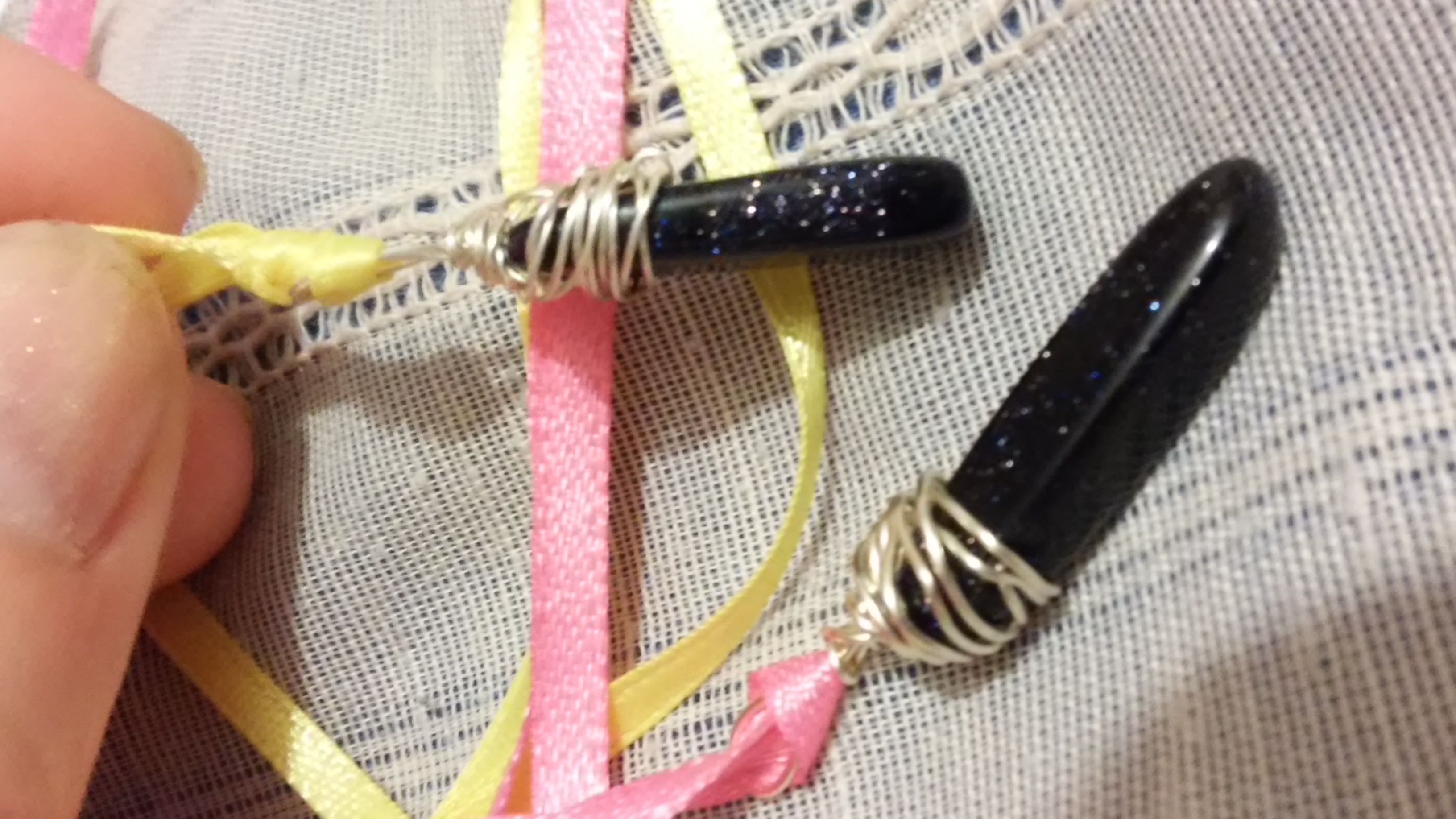 Purple/Indigo "Blue Goldstone" Pendant Ribbon Necklace