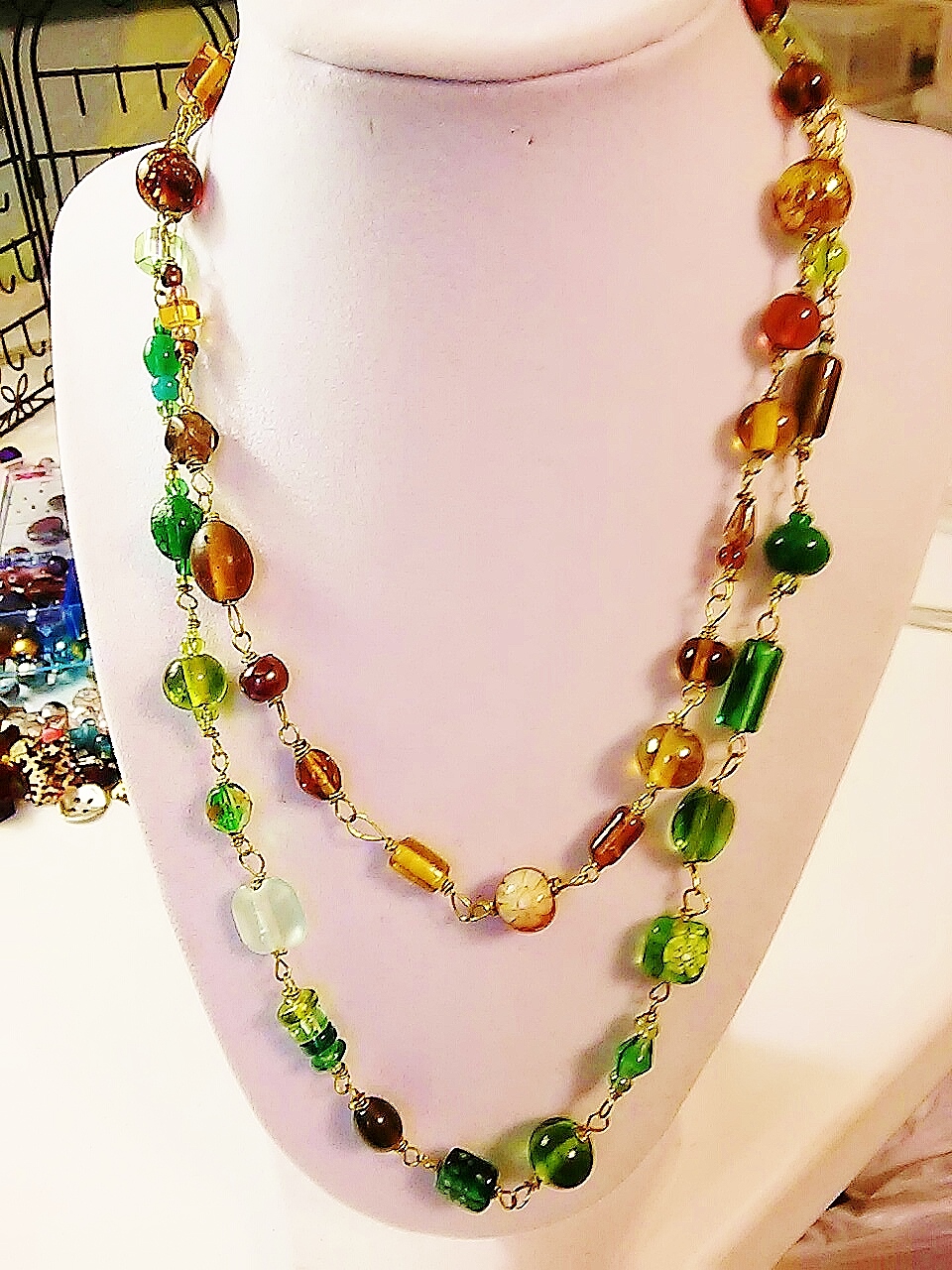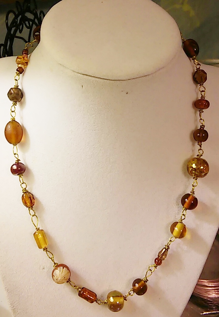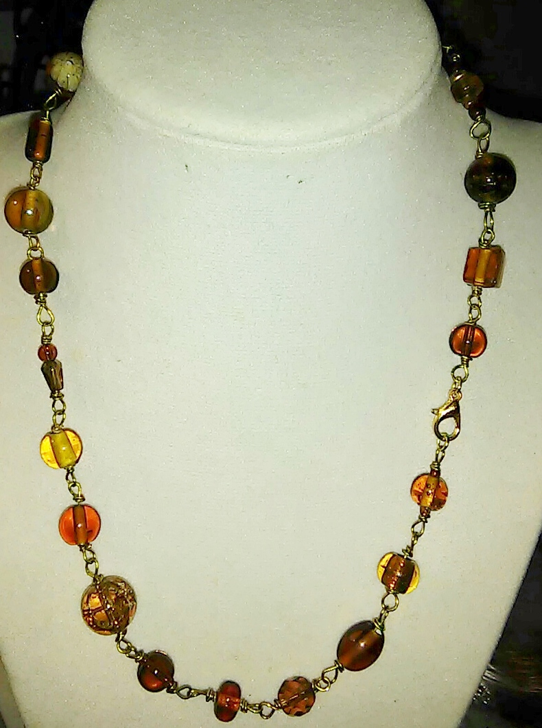 Chocolate Brown Bronze Amber Honey Glass Beaded Wire Necklace