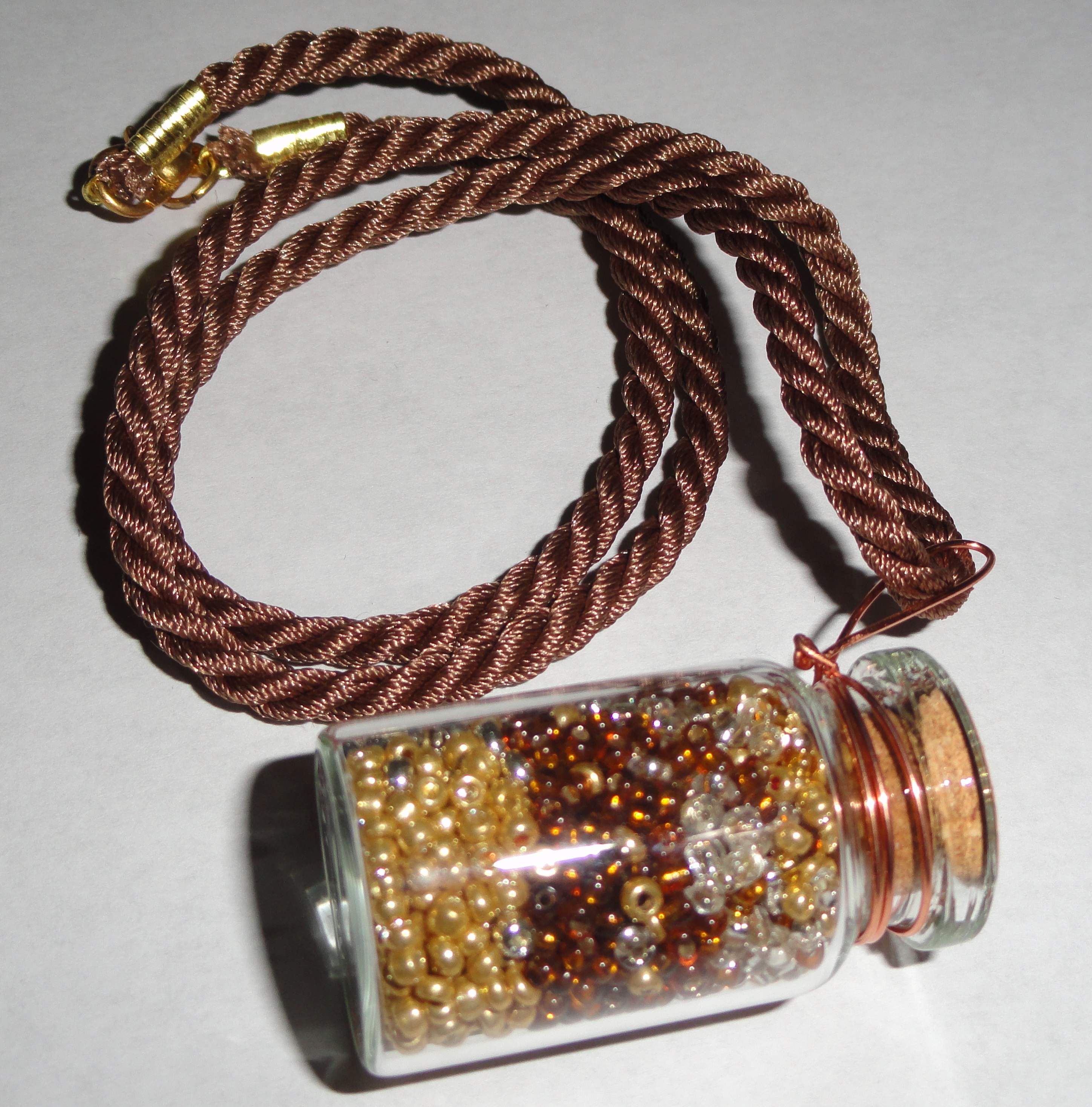 filled with decorative seed beeds in a swirly pattern like sand bottle art