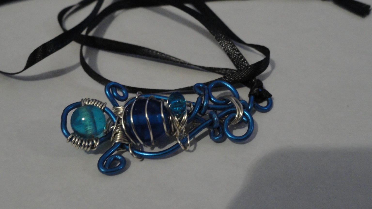 blue beaded metal wrapped charm necklace