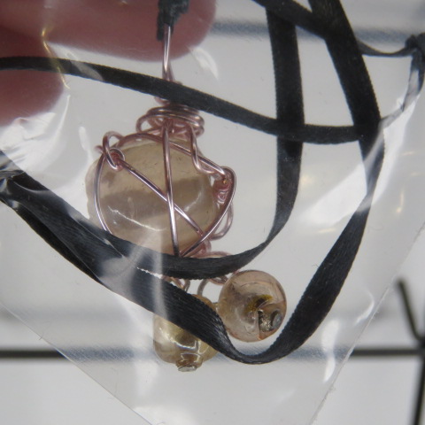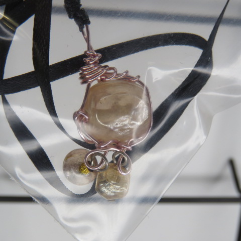 pink blown glass nugget bead and rose Gold wire wrapped handmade "drip" style necklace