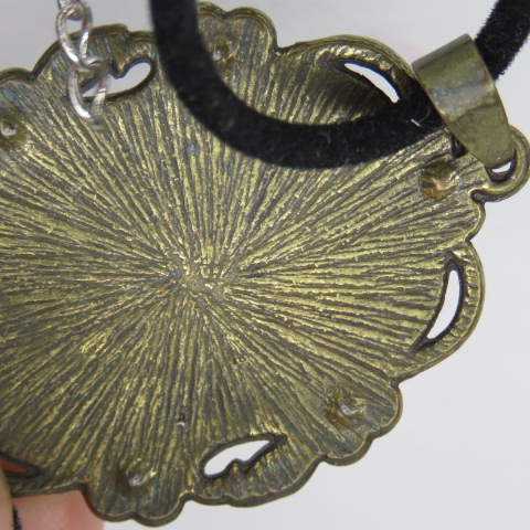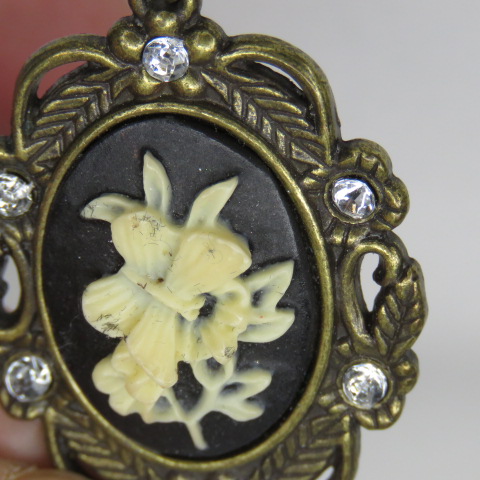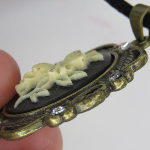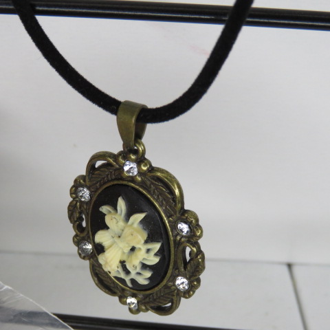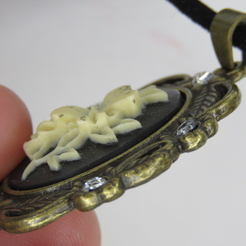 brushed gold butterfly on flower cameo black velvet rope necklace