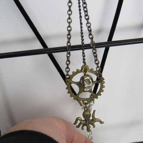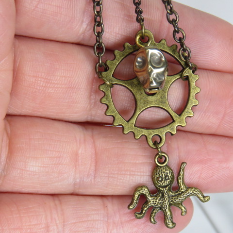 octopus gold brushed antiquely triangle dropping charm necklace