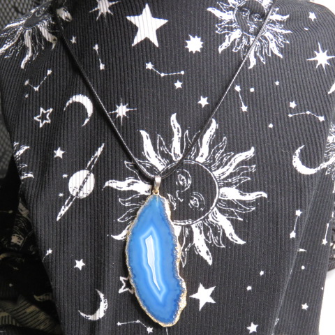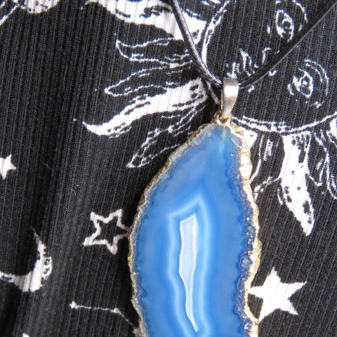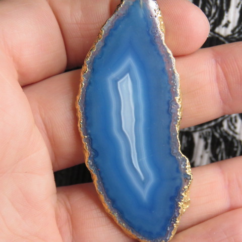 Blue and White Polished Geode Natural Stone Slice with Gold plated/painted edge necklace