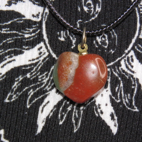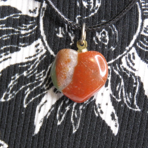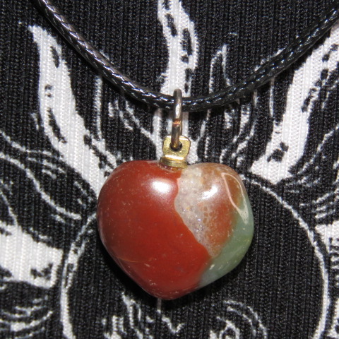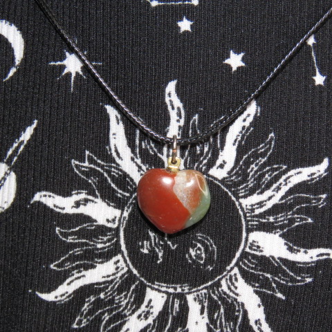 Unakite Heart Shaped Red and Green Jasper Quartz Pendant necklace