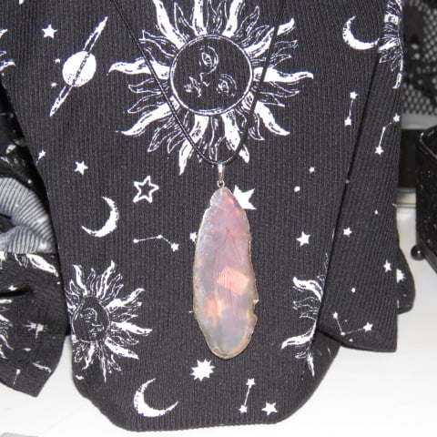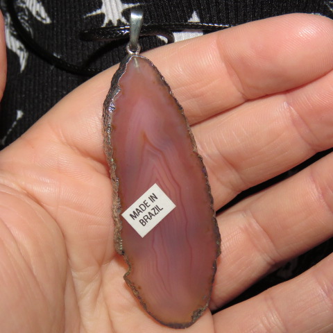 Antique from Brazil, with sticker, remove by owner. Geode, mounted pendant necklace