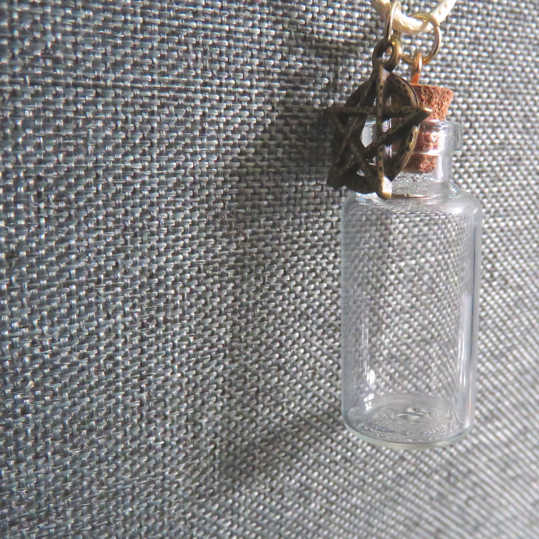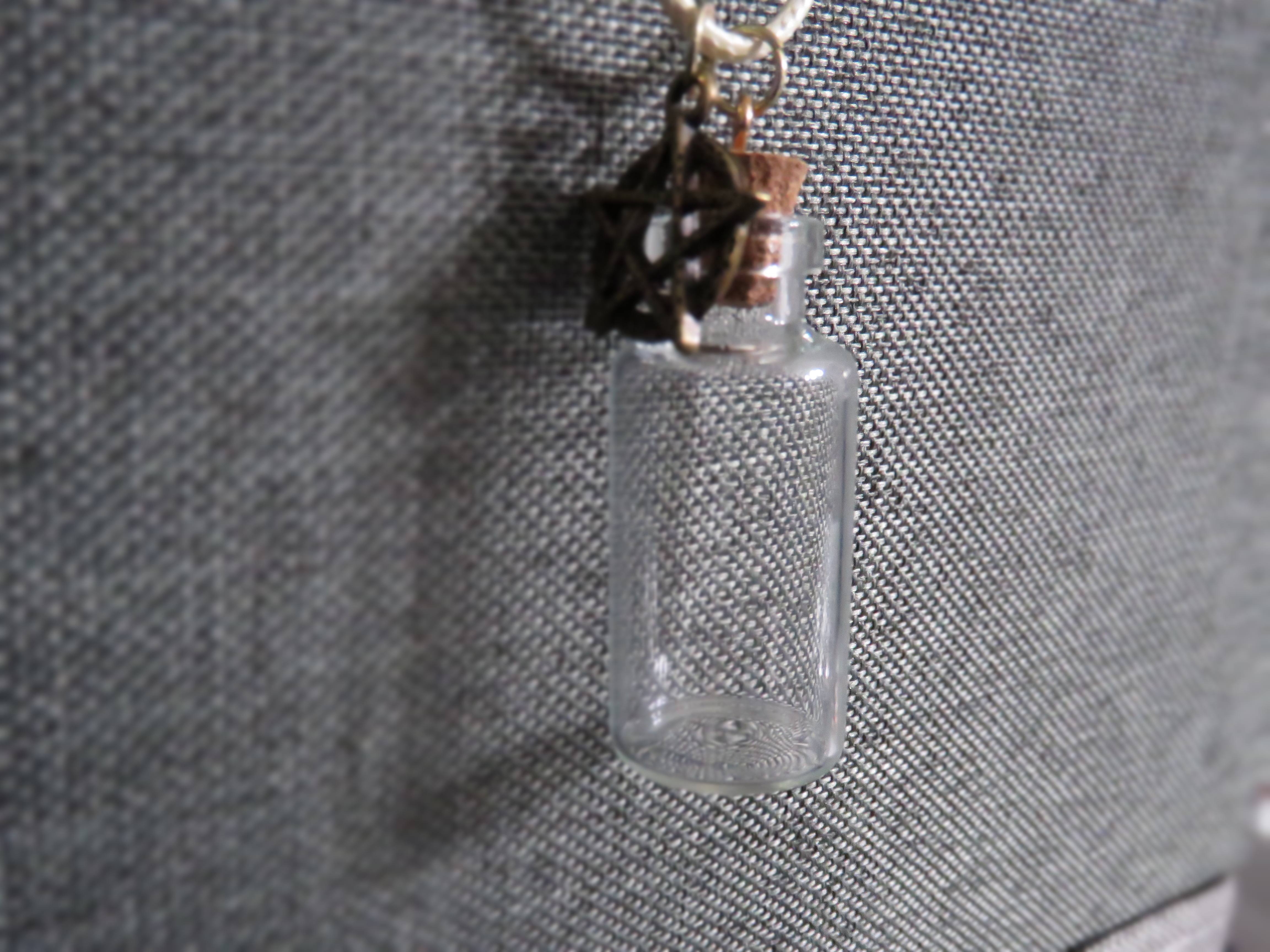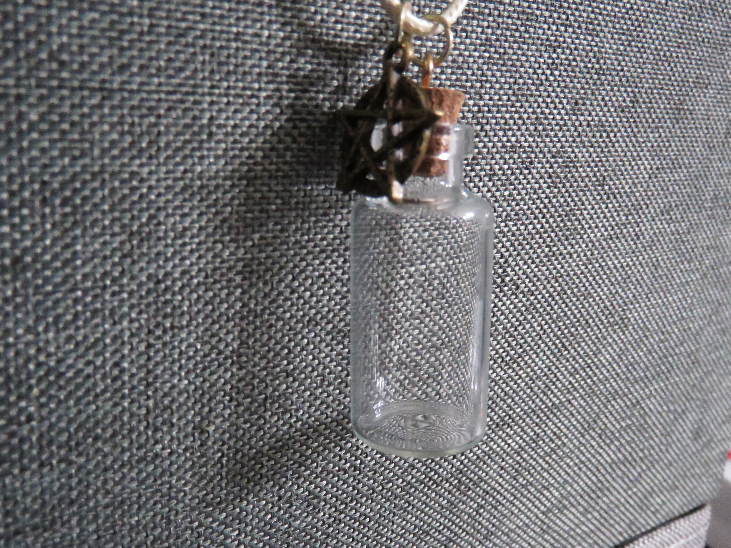 Corked Bottle Gold Star Charm Necklace silver clasp Yellow string