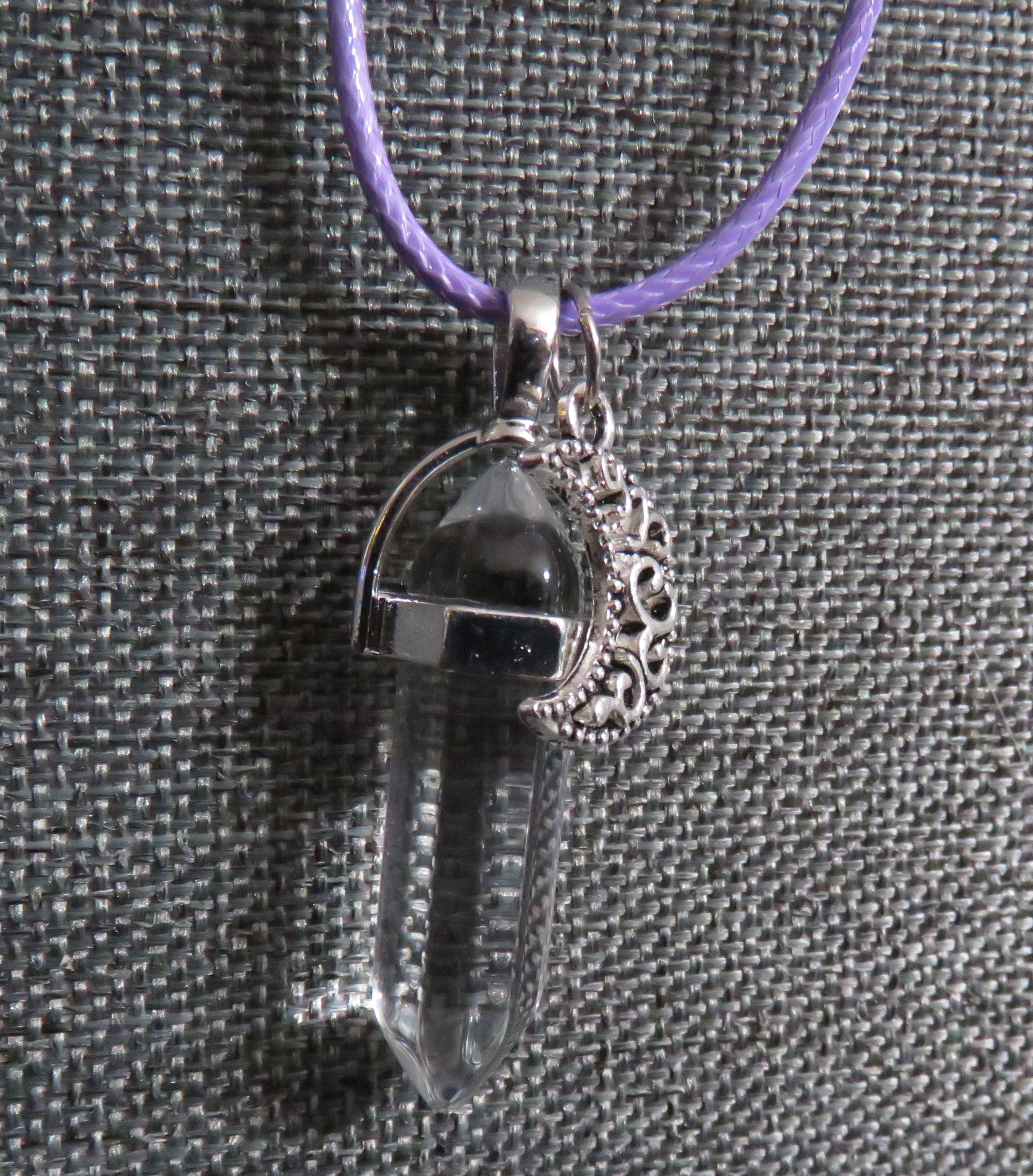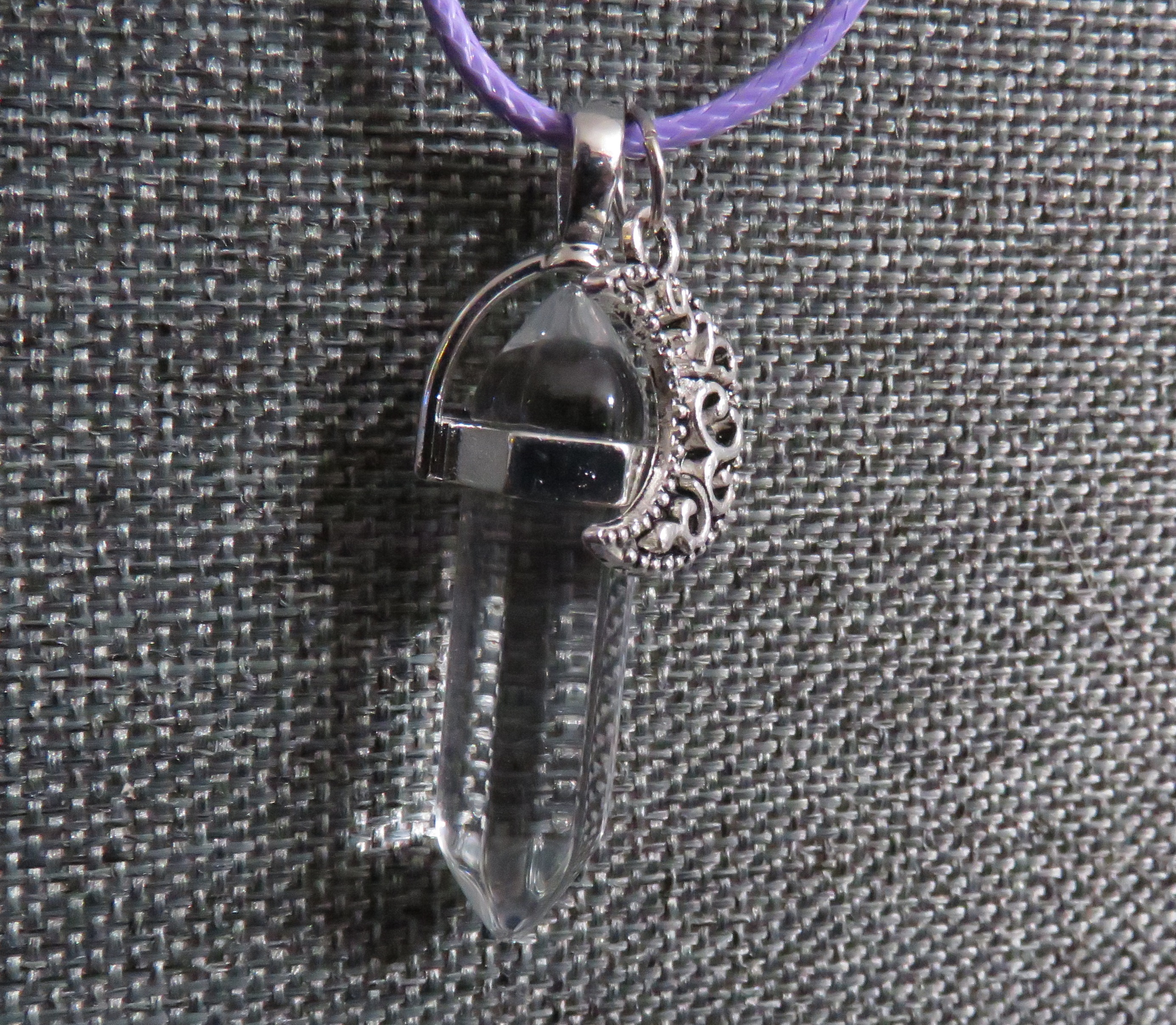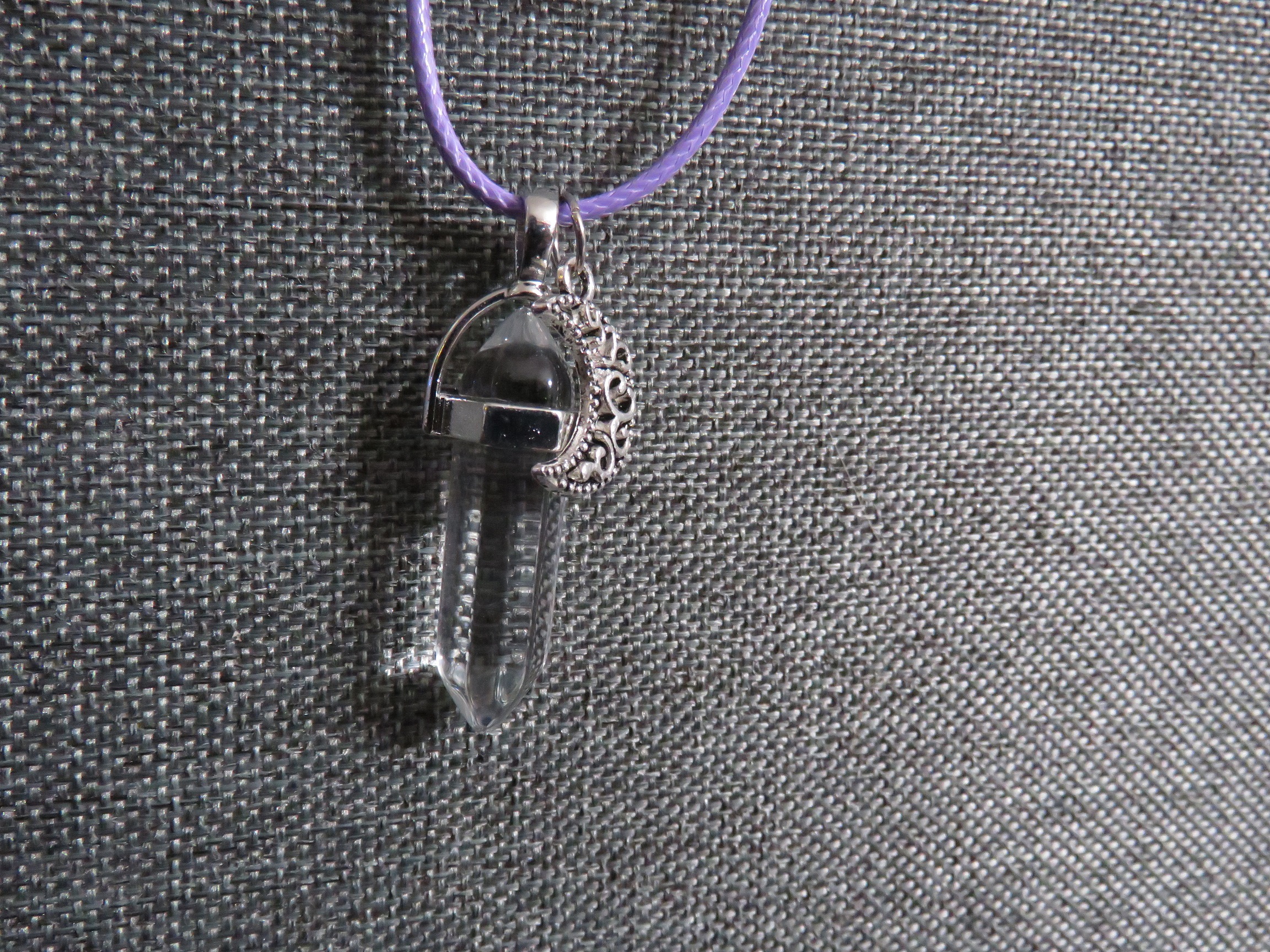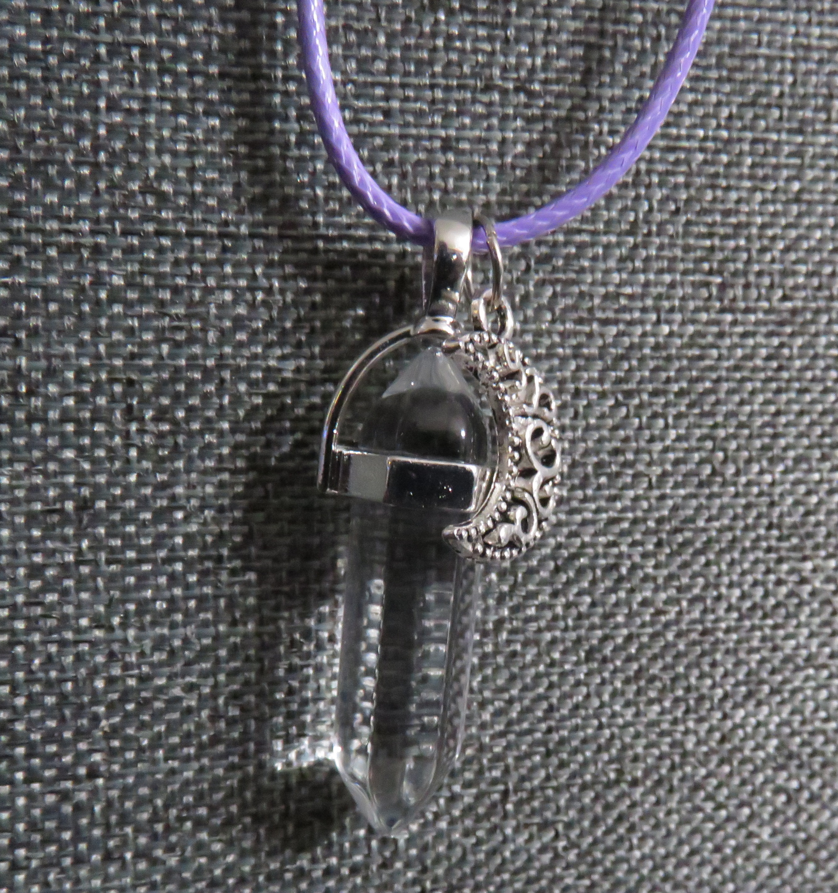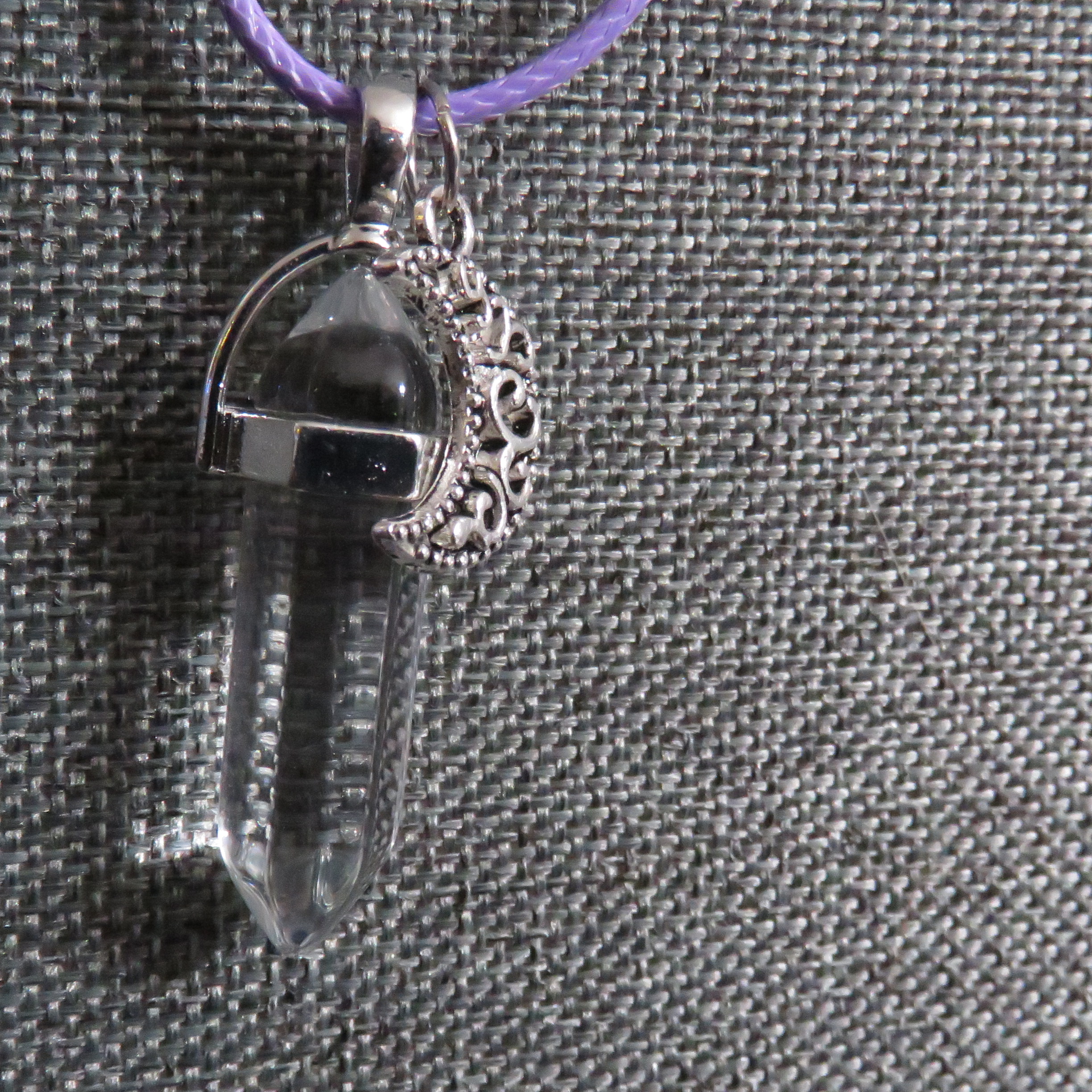 Clear Glass Crystal Pendant, Paisley Moon Charm, Lavender Necklace Cord