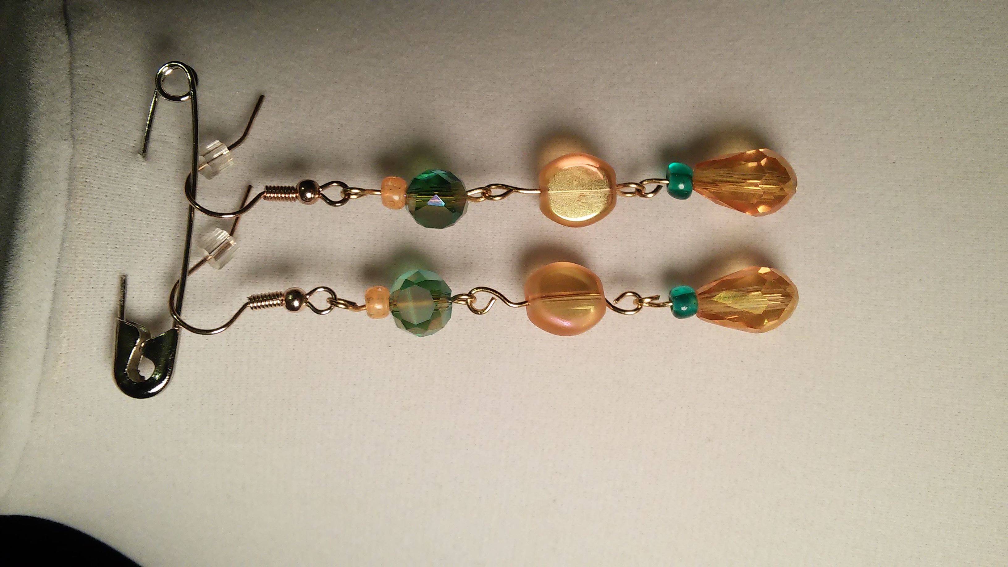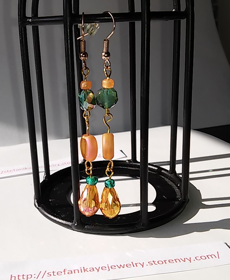 Orange/Peach & Green/Jade Colored Glass Earrings