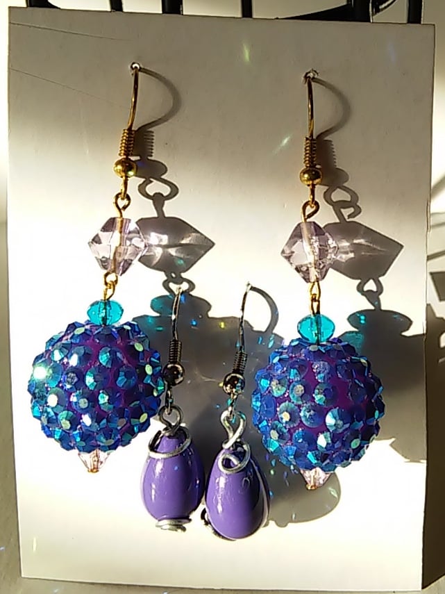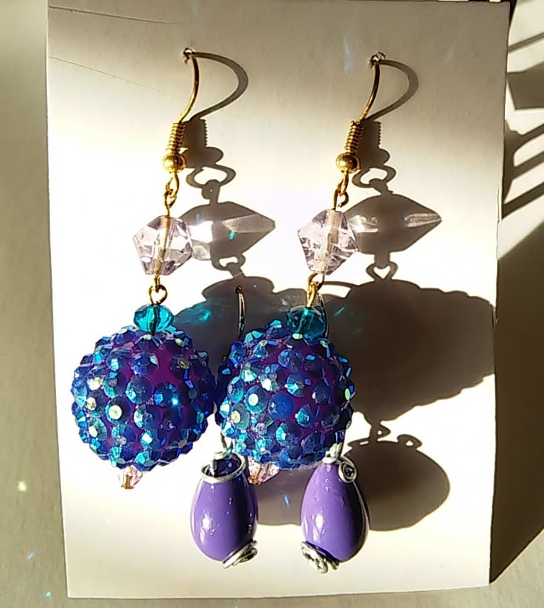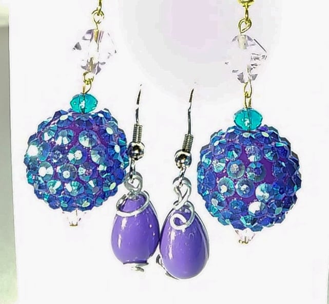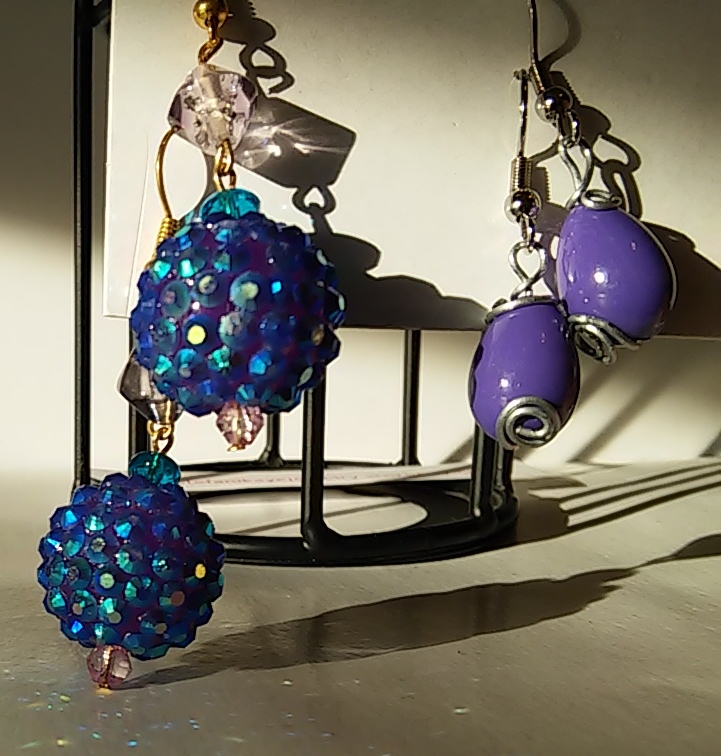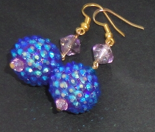 double sphere blue painted glass and porcelain with dark silver findings earrings