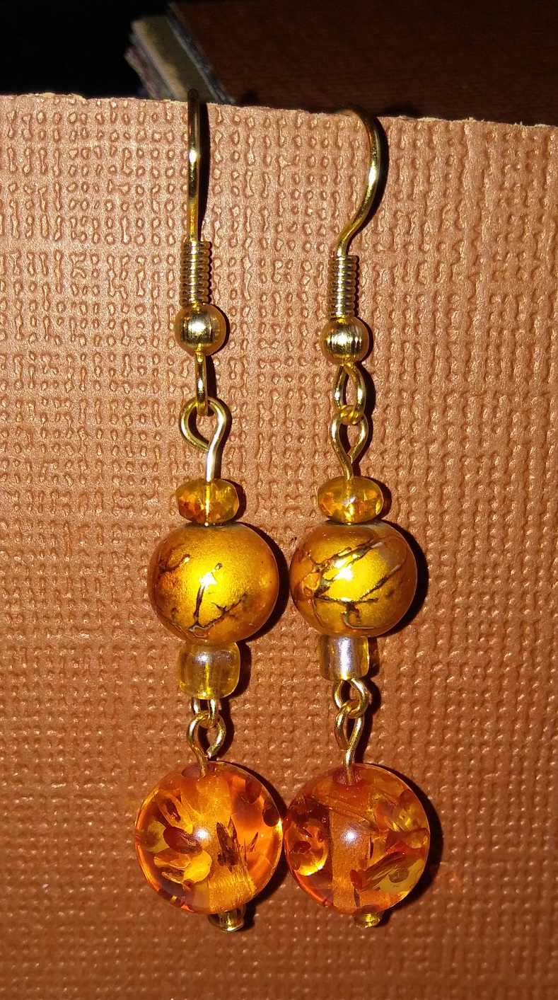 metallic painted glass spheres and acrylic/plexiglass sphere beads gold findings (hooks and pins)