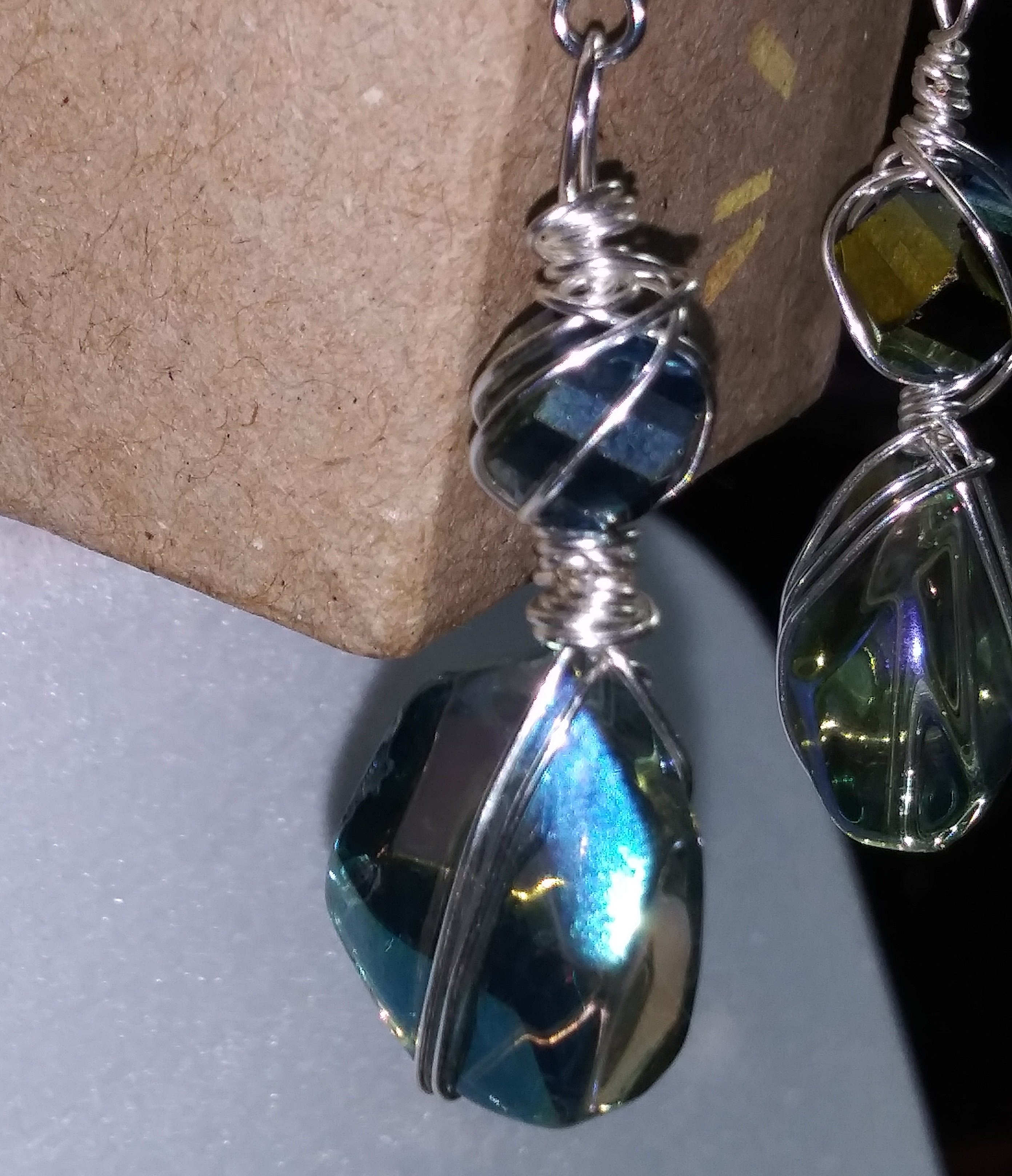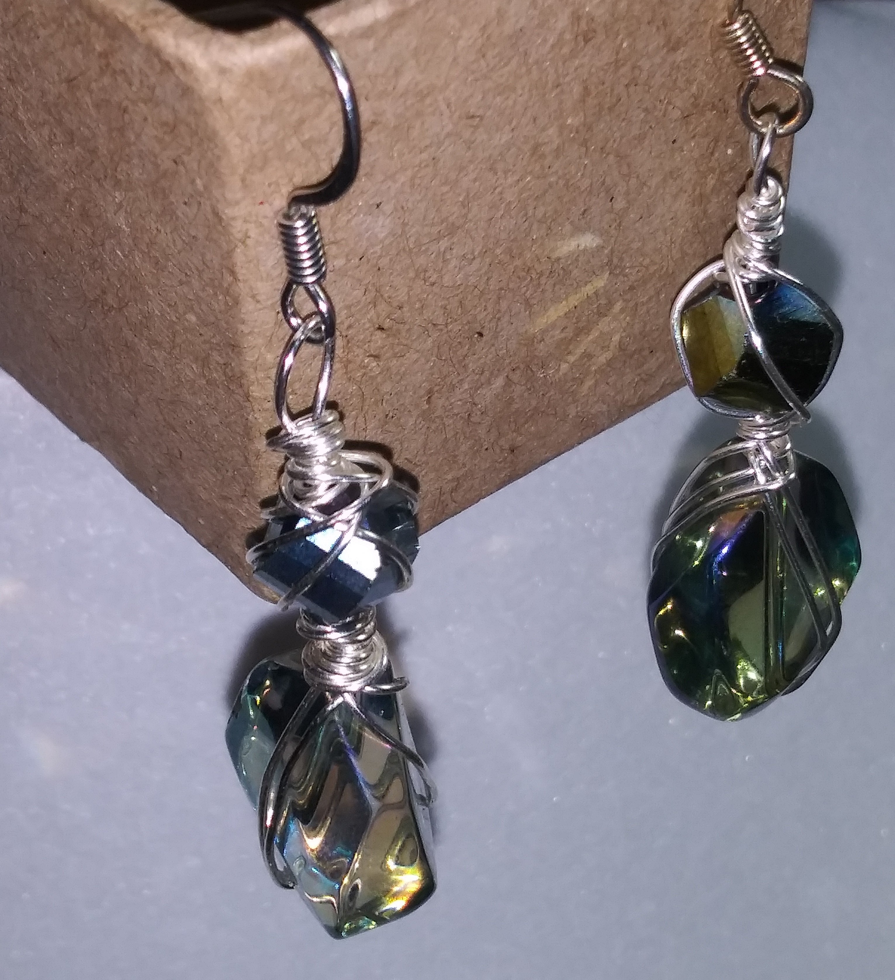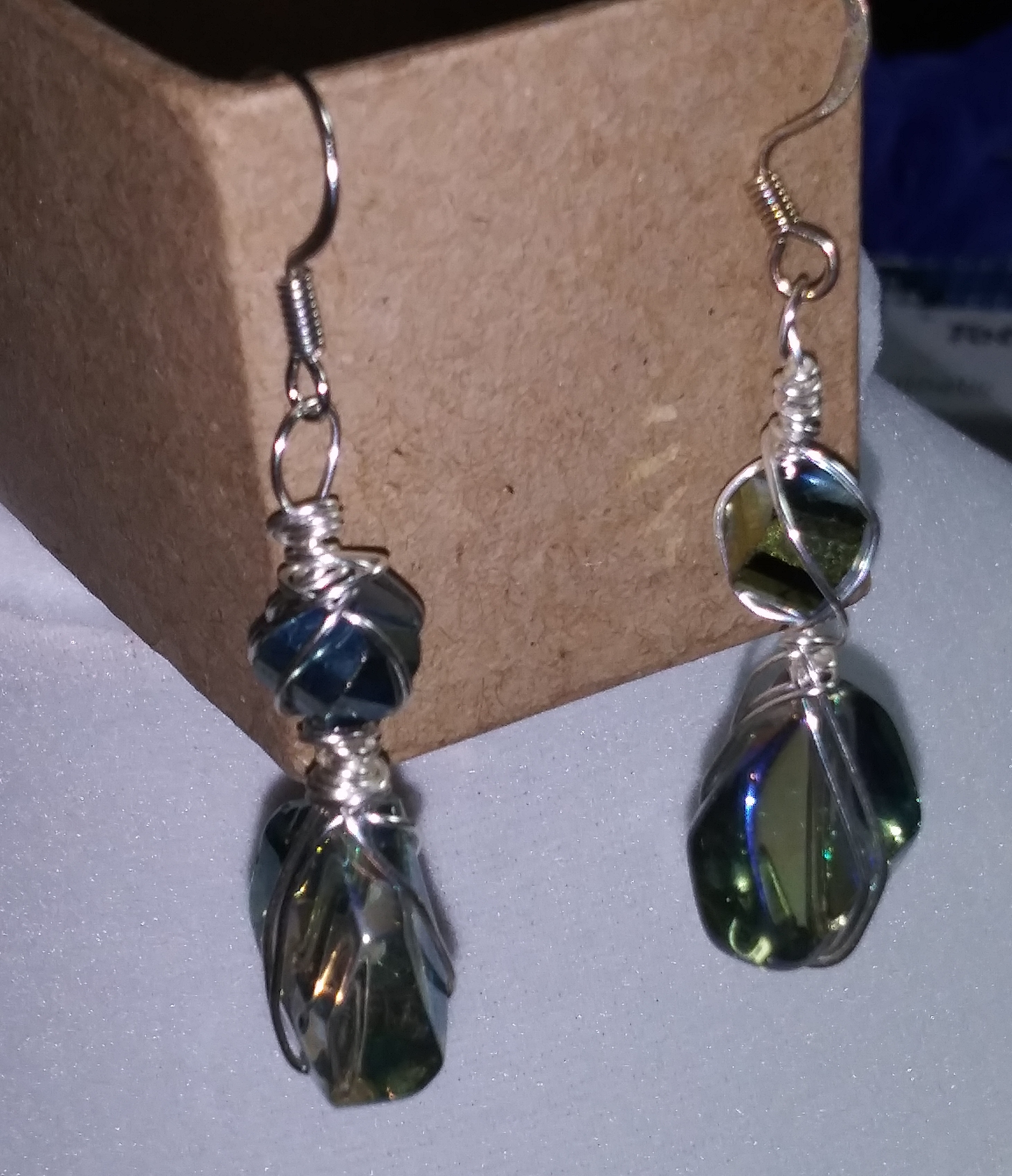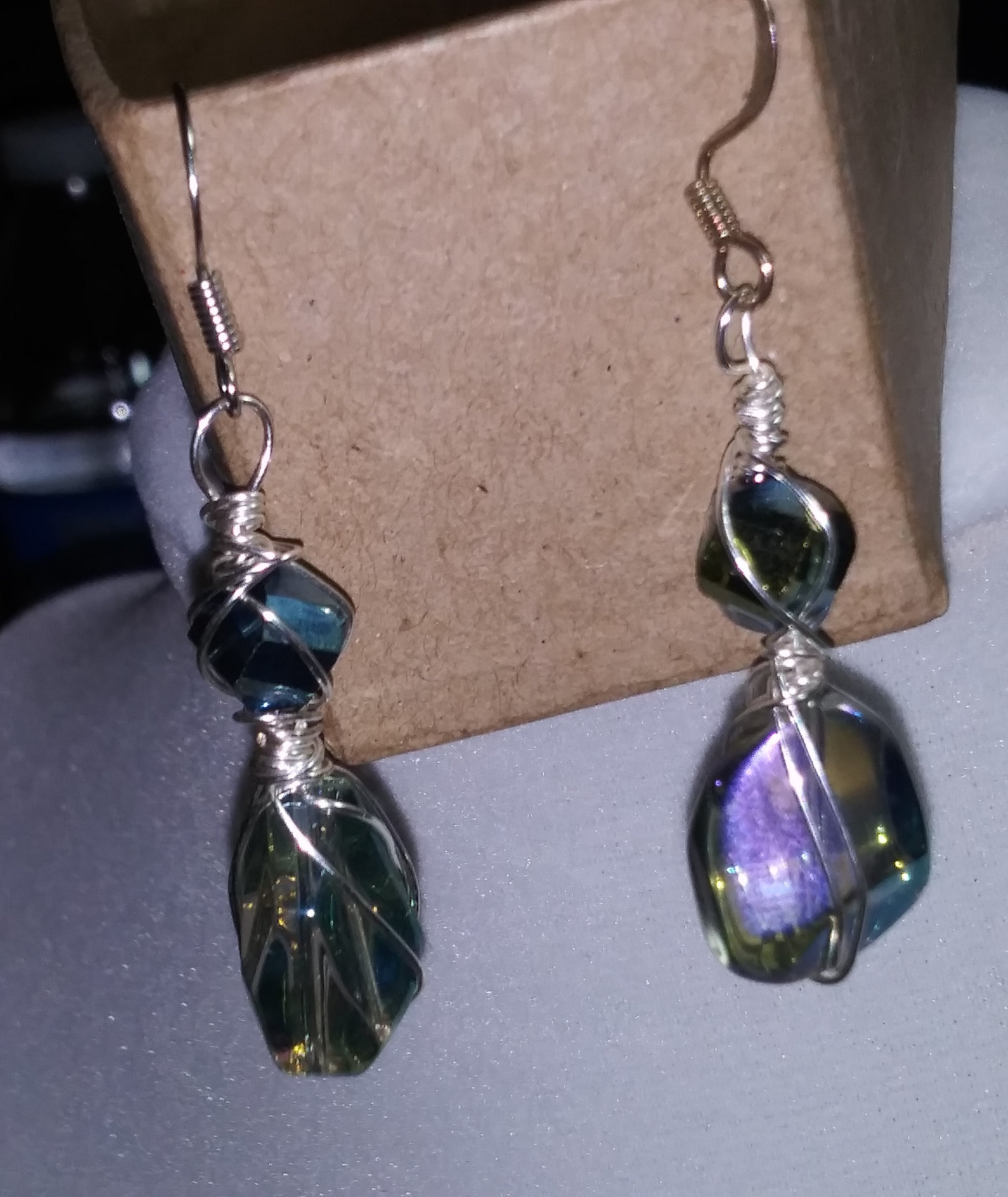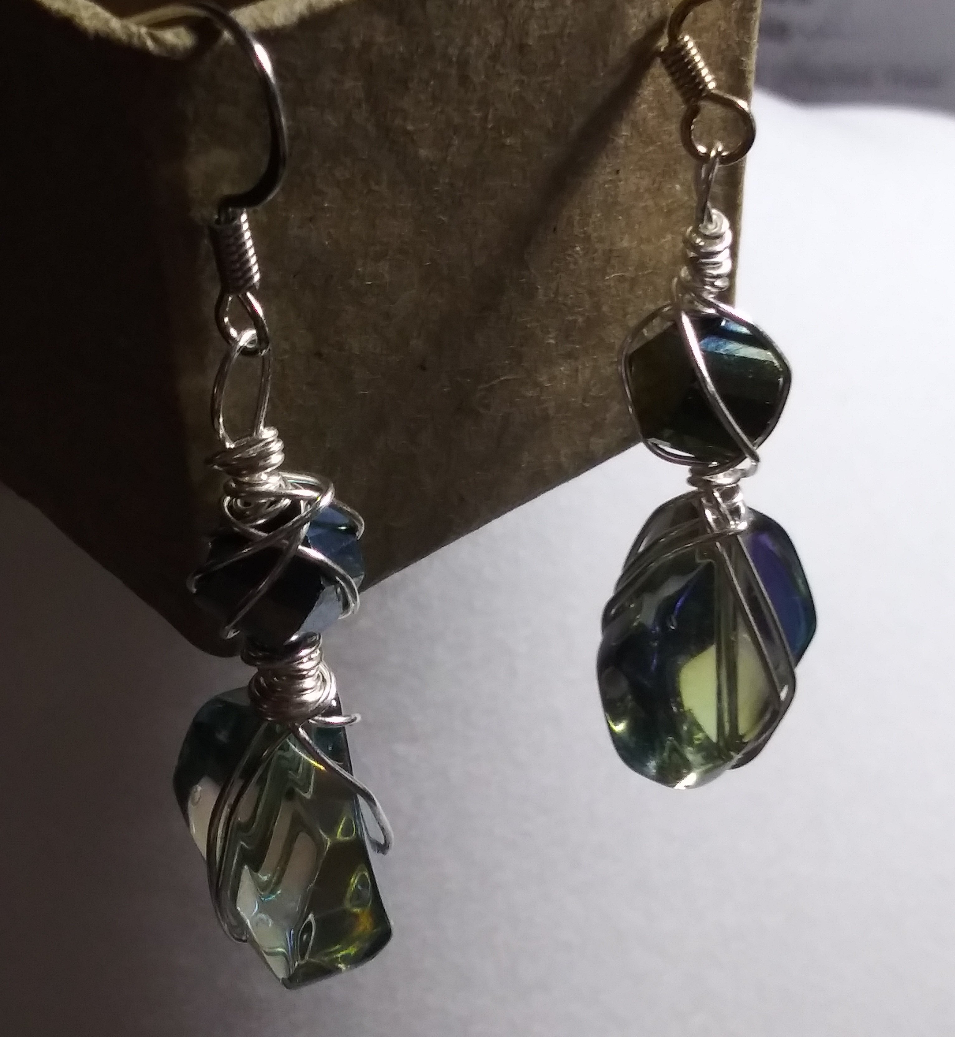 [SALE]smoke blue and silver clear water-like glass fire bead bead small dangle earrings