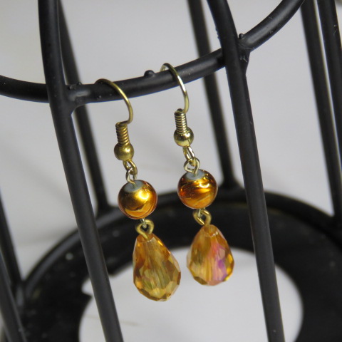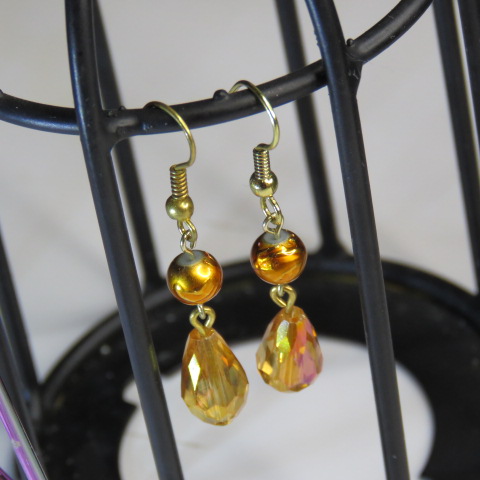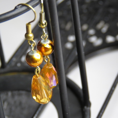 Orange Metallic Porcelain Glass Fire Bead Droplet Earrings