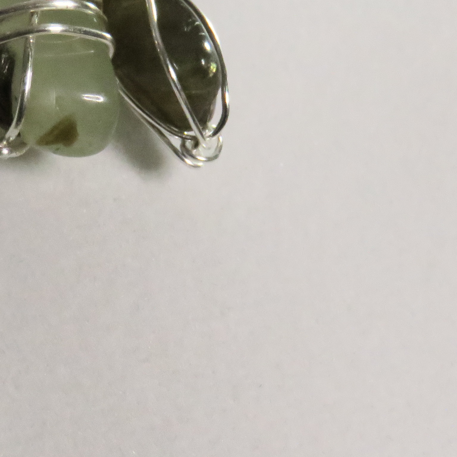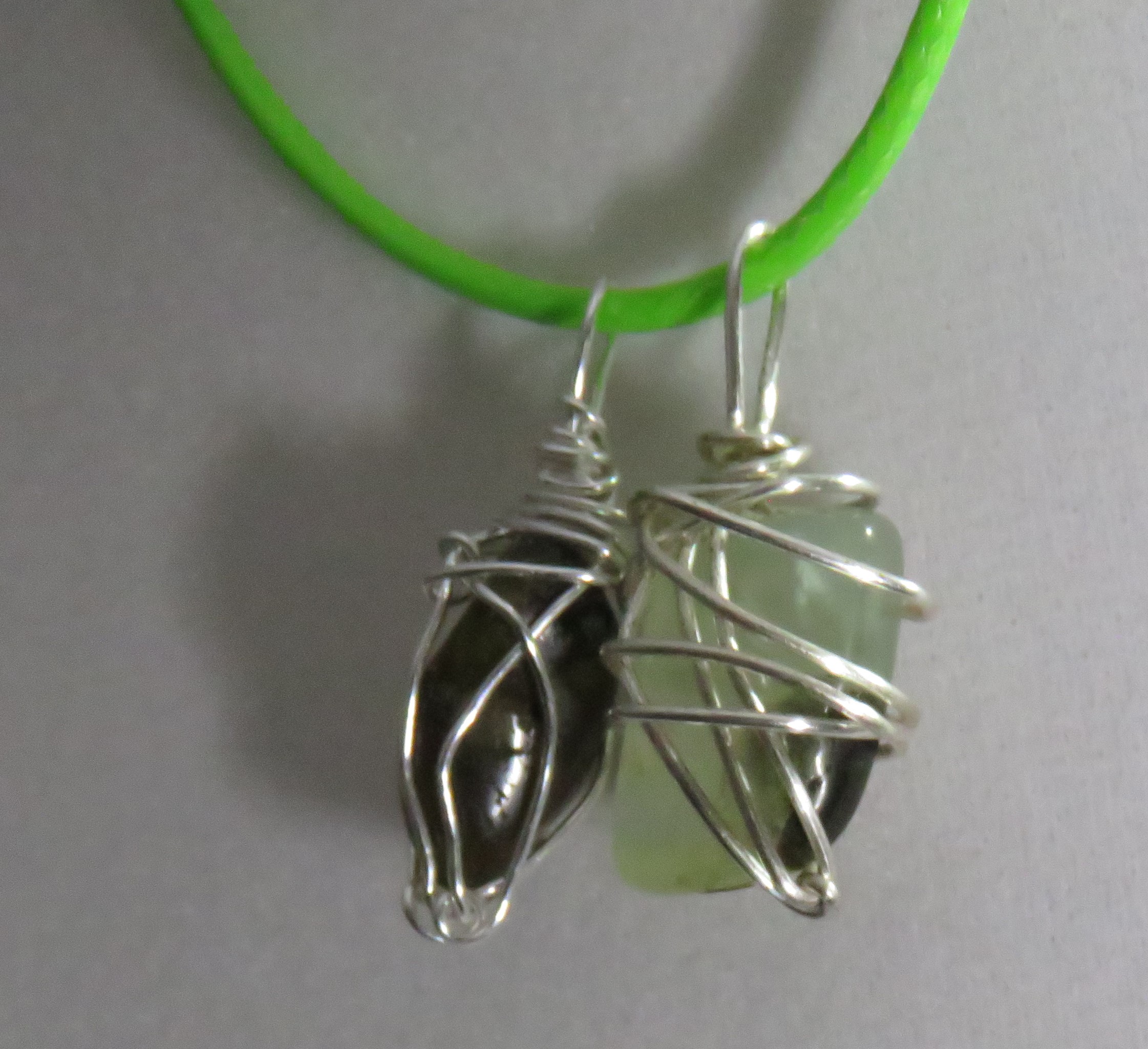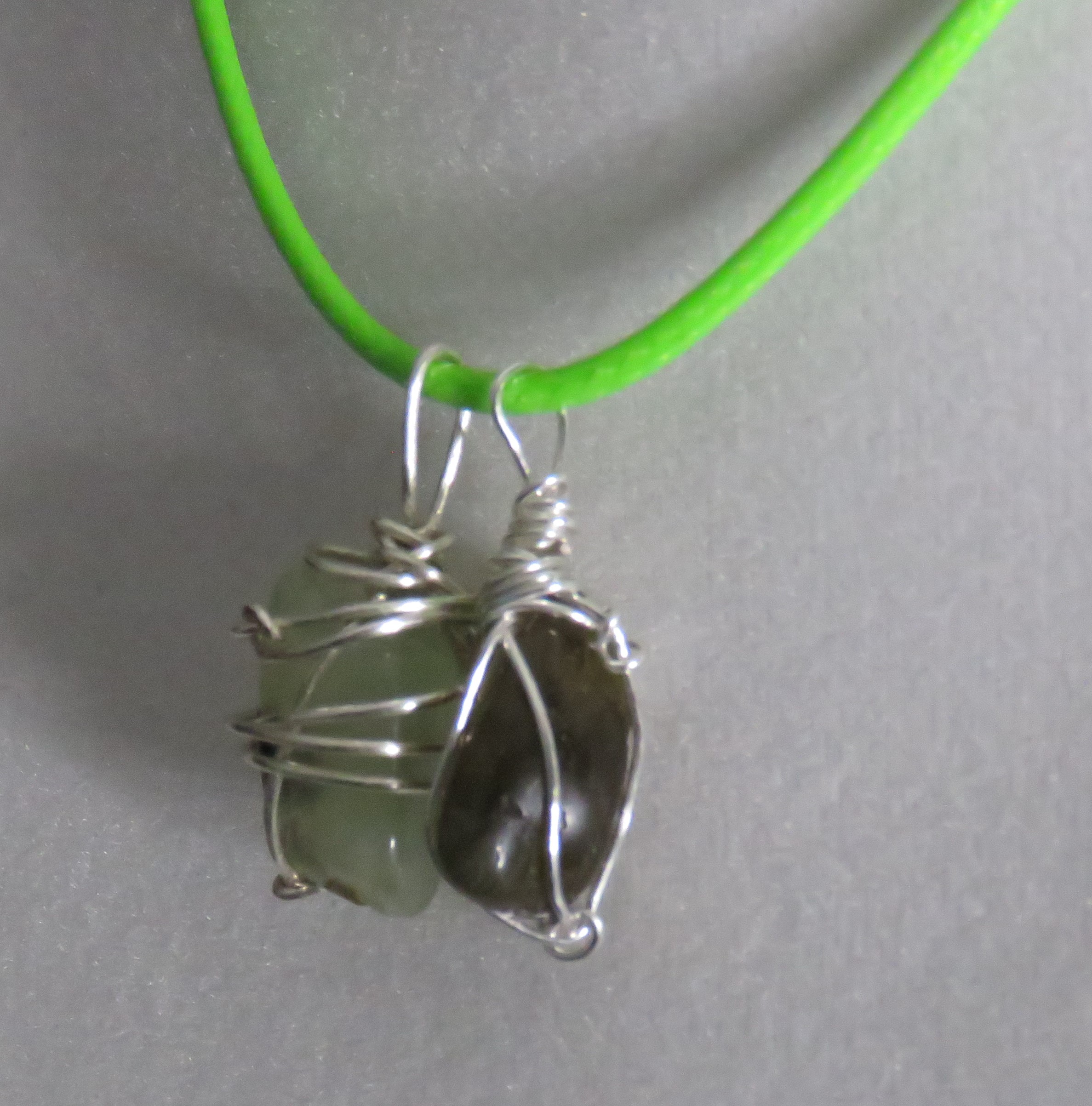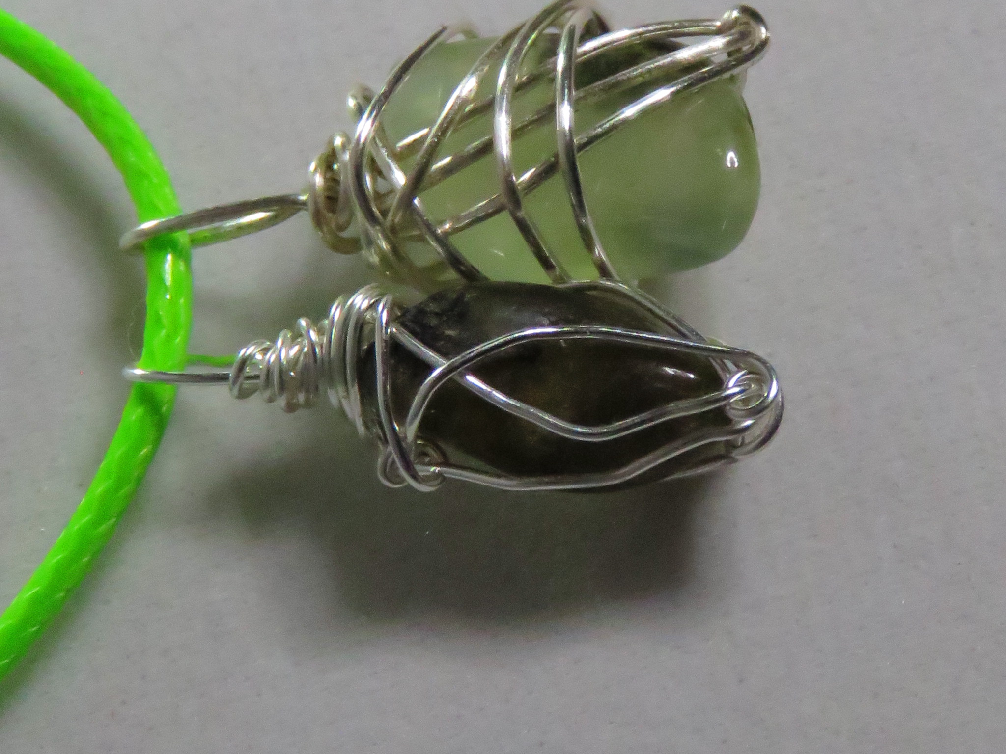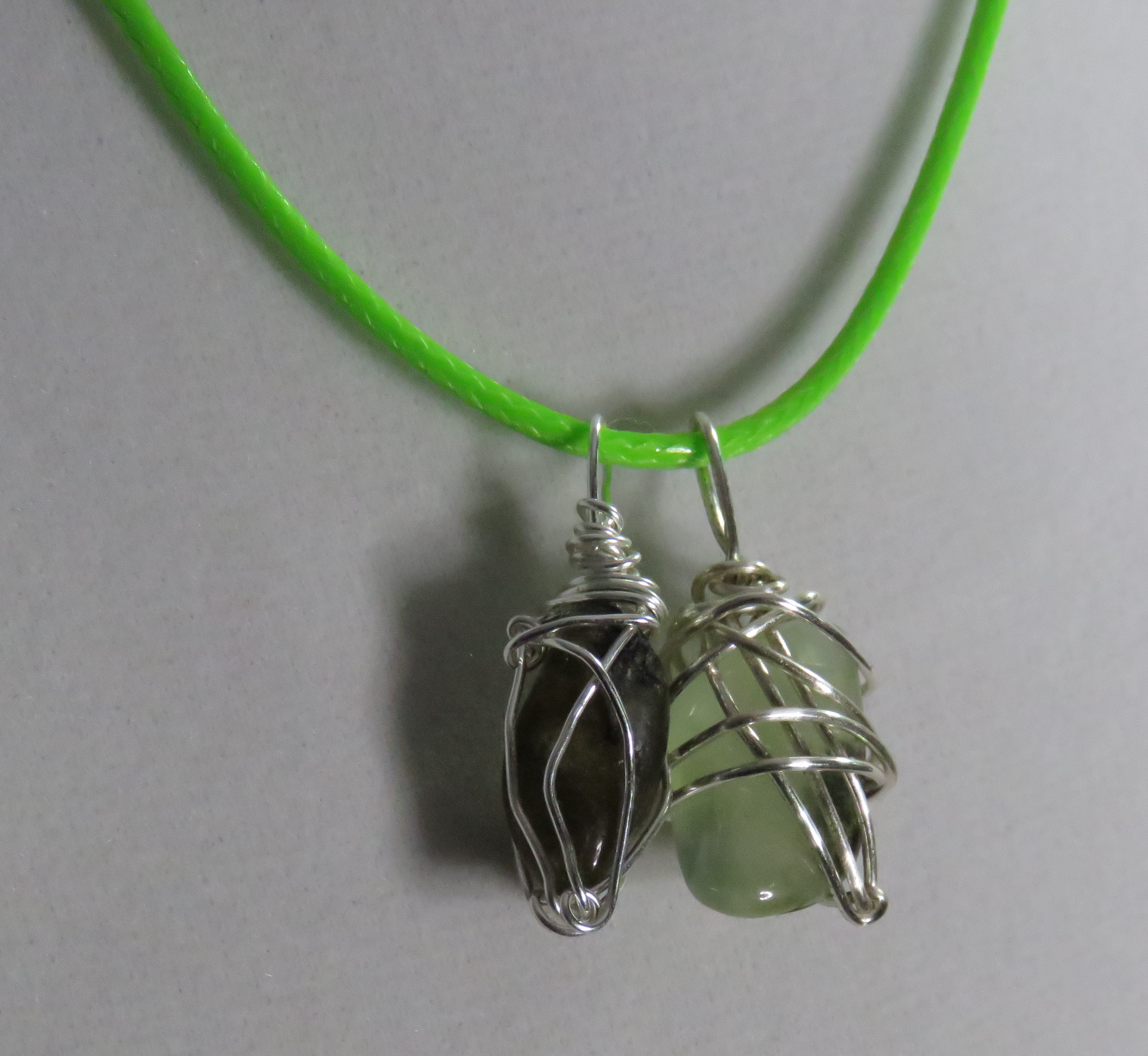 green cord with silver clasp and silver wire