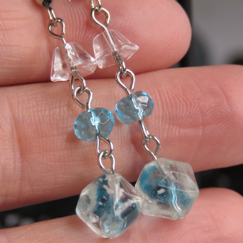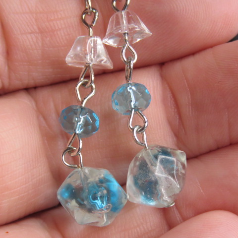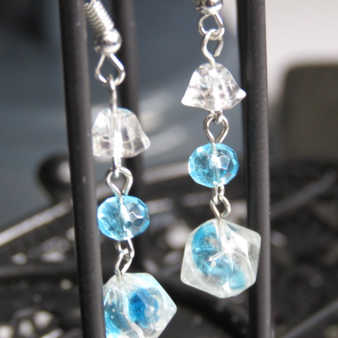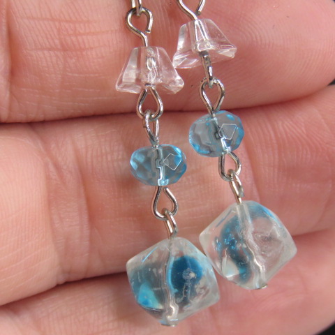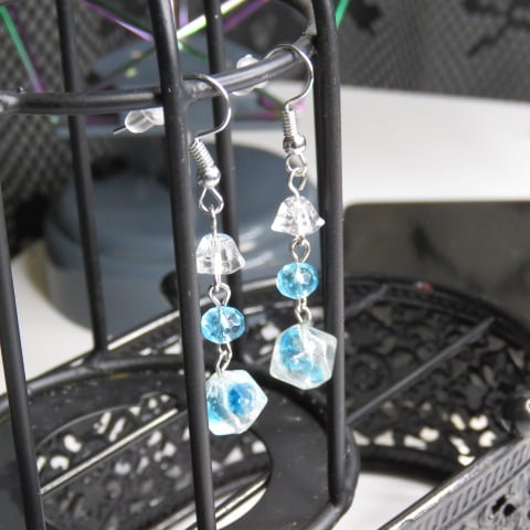 [SALE]Clear Ice Blue Cube Drop Silver Earrings