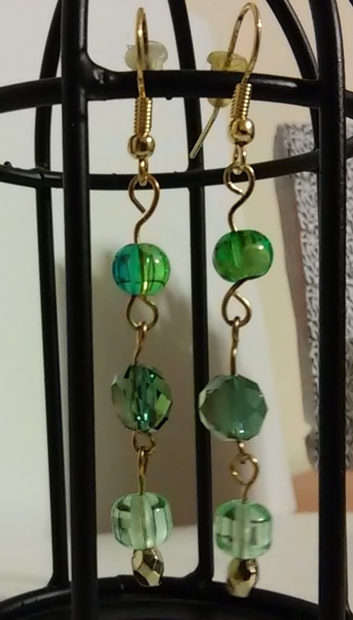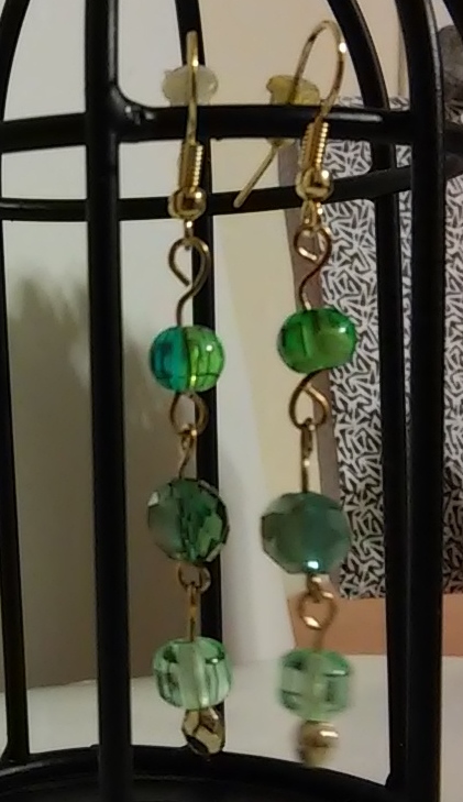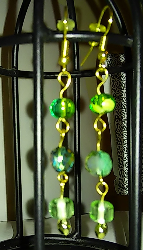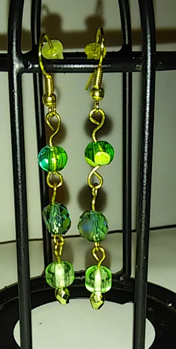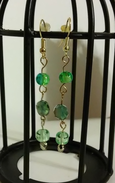 Long Multi-Faceted Green Glass Bead Gold Findings Earrings