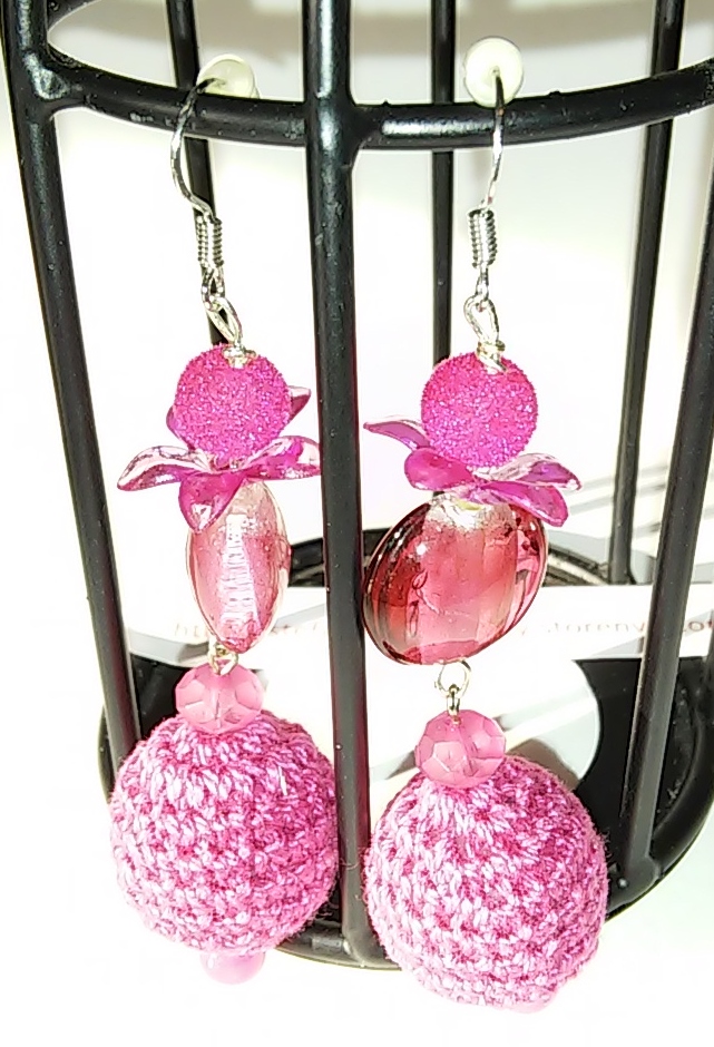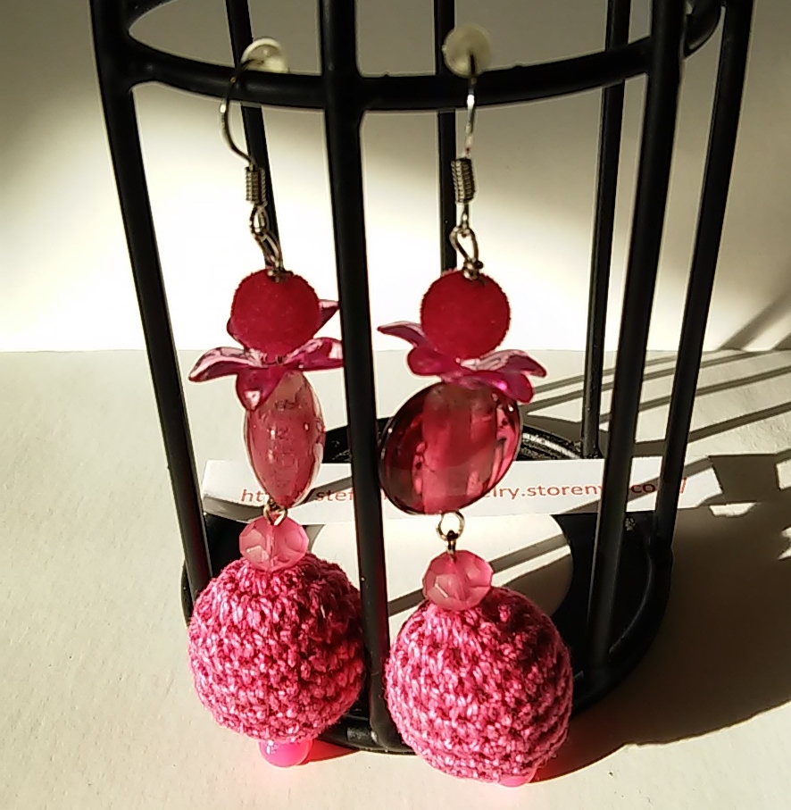 [SALE]Watermelon Pink Wire Wrapped Punk Green glass Earrings