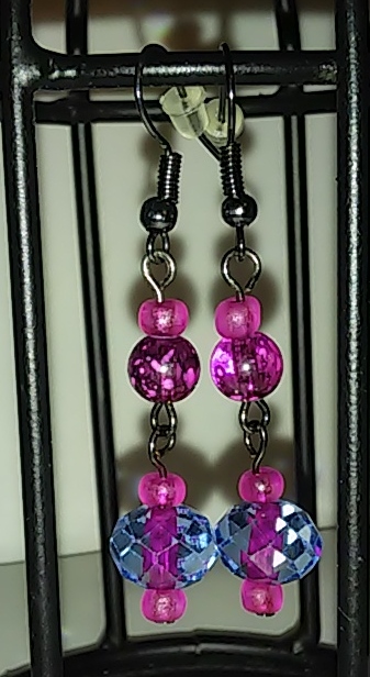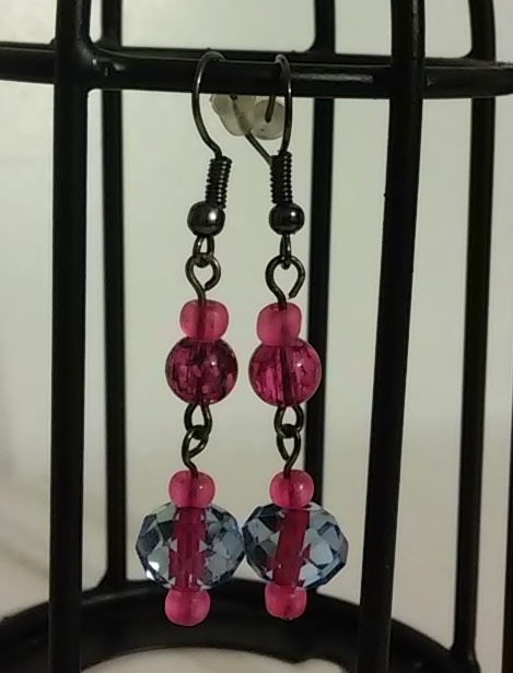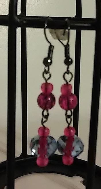 Hot Pink and Periwinkle Painted Glass Bead Dangles