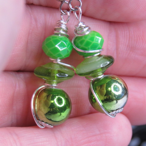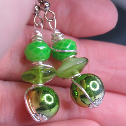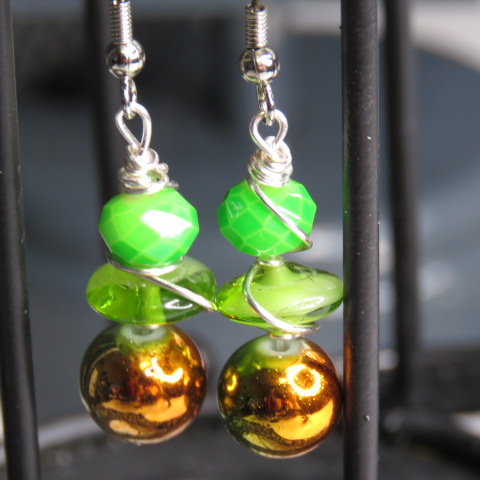 Long Multi-Faceted Green Glass Bead Gold Findings Earrings