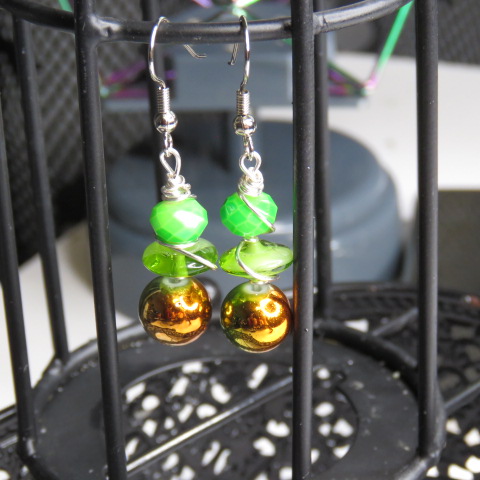 Orange/Peach & Green/Jade Colored Glass Earrings