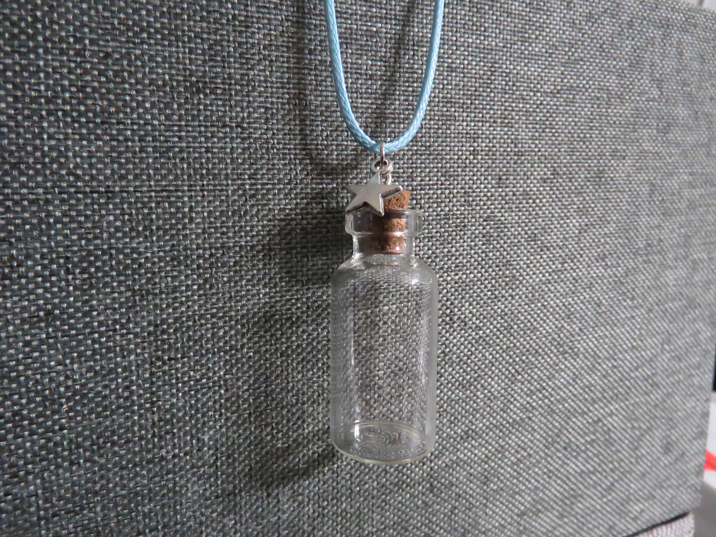 Corked Bottle Star Charm Necklace silver clasp baby blue string