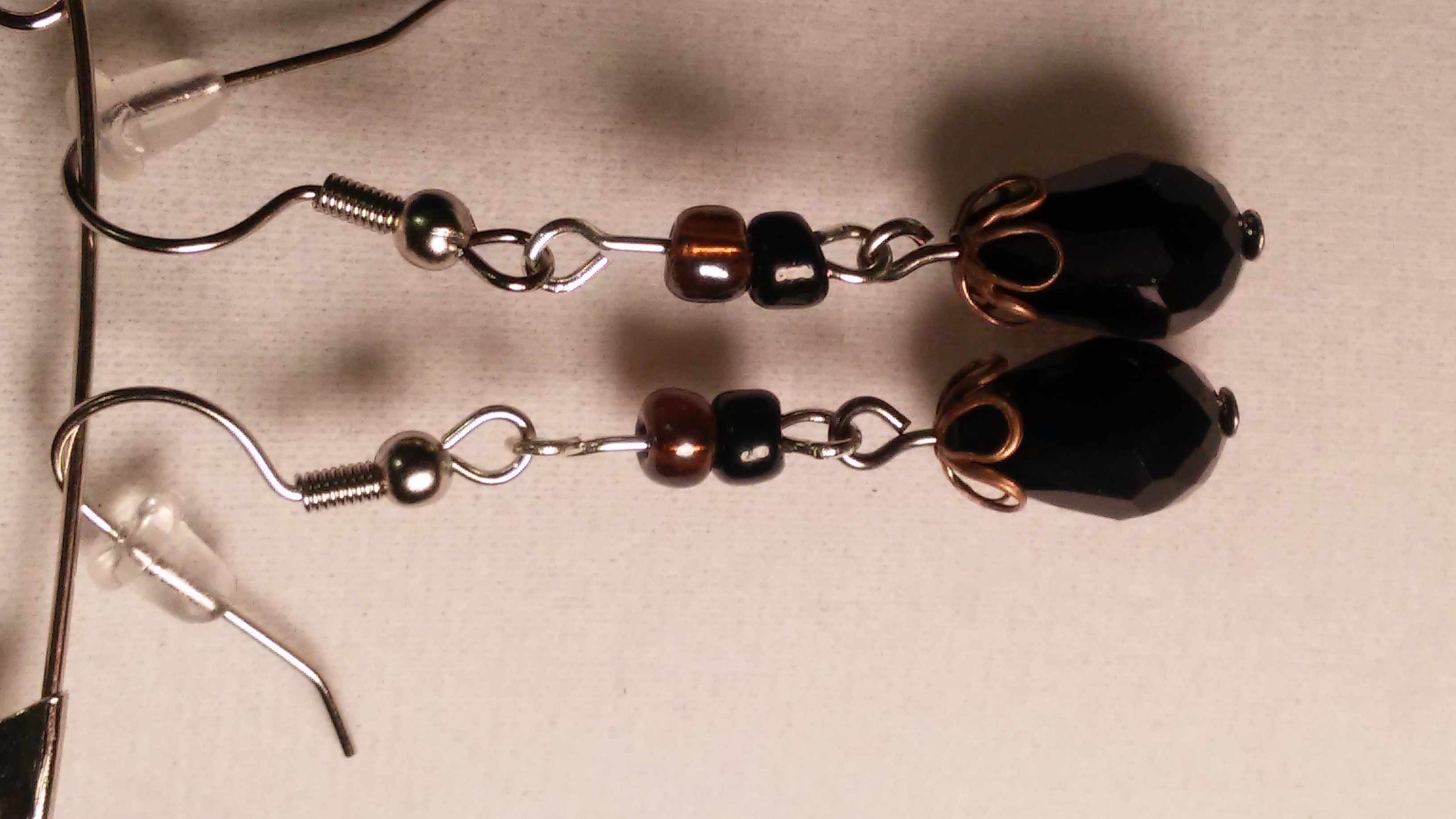 Black Faux Stone Goth-y Punk Silver Wire Wrapped Dangle Earrings