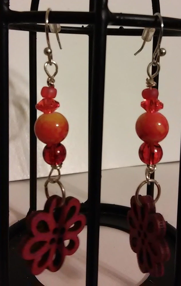 Red to Green Ombre Glass Crystal Pendant, Star-in-Star Charm, Red Cord Necklace, Silver theme
