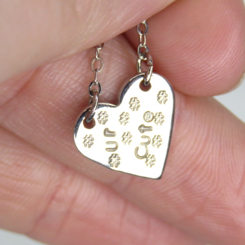 "ur cute" stamped metal heart shaped silver plaque chain necklace