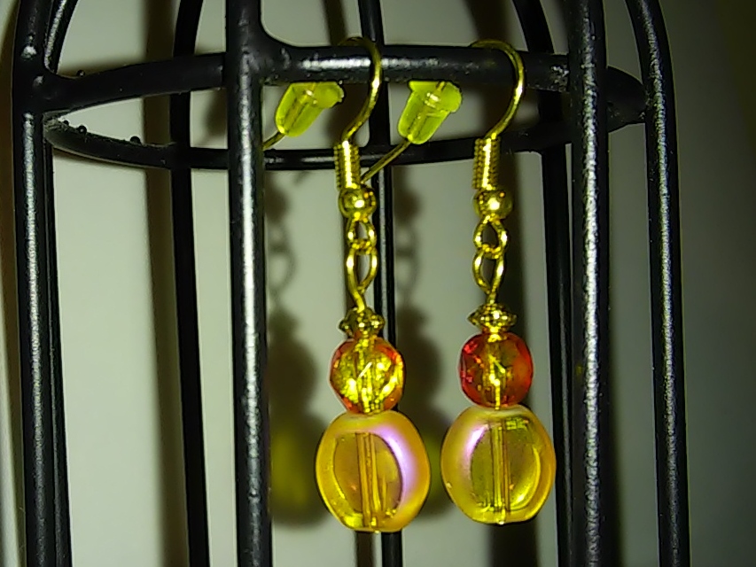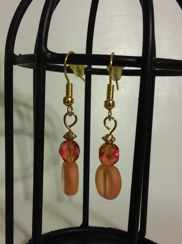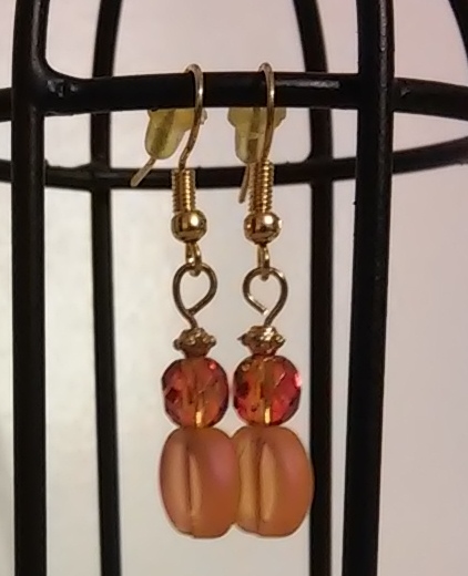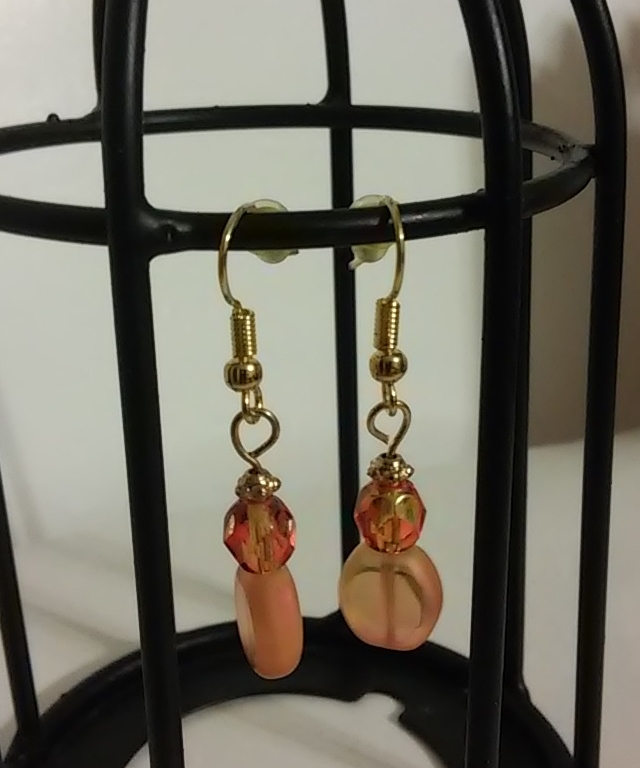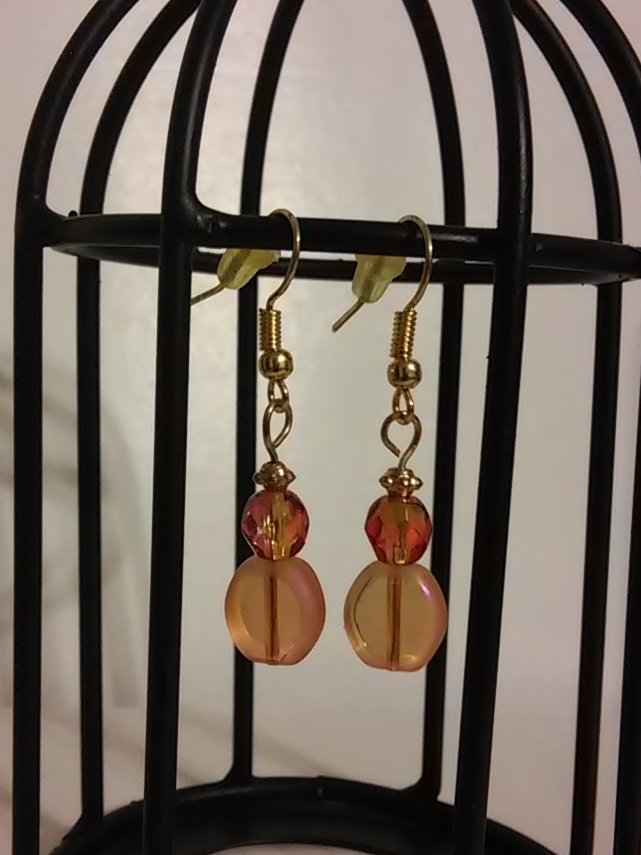 Orangey Peachy Glass Fire Bead Earrings with Gold Findings