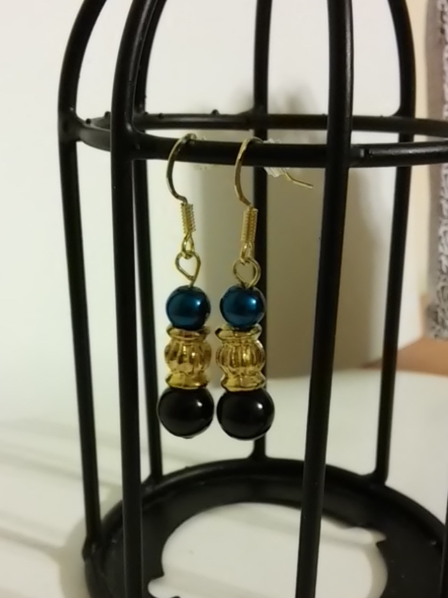 Royal Blue, Gold Spacer and Faux Black Pearl Glass Bead