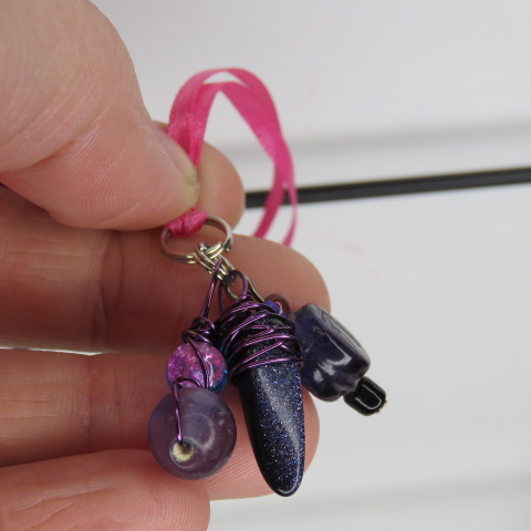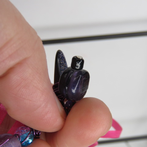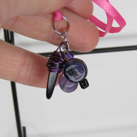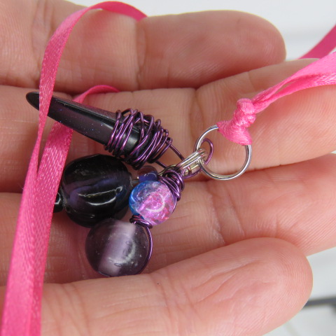 Purple trio beaded pink ribbon charm necklace