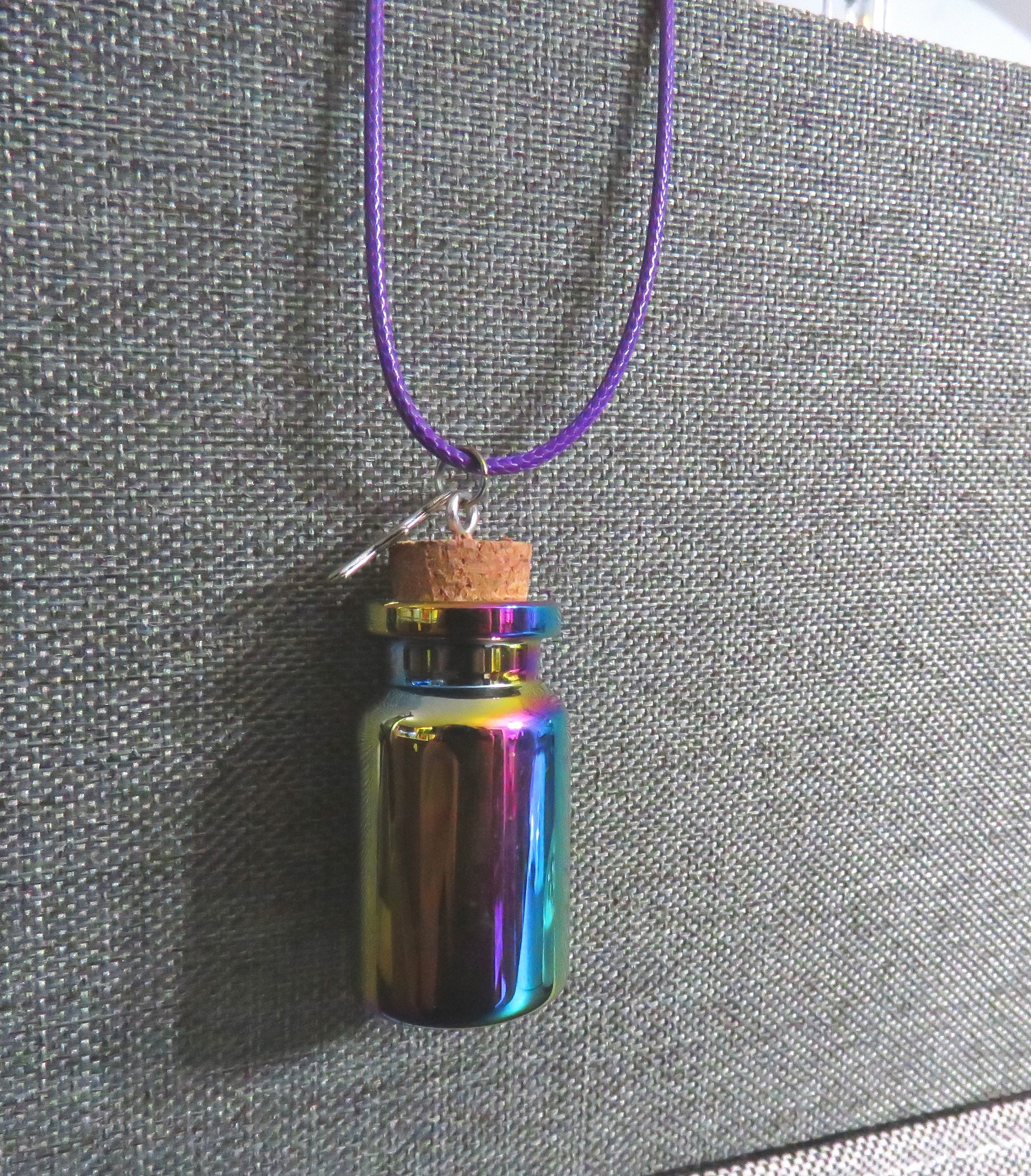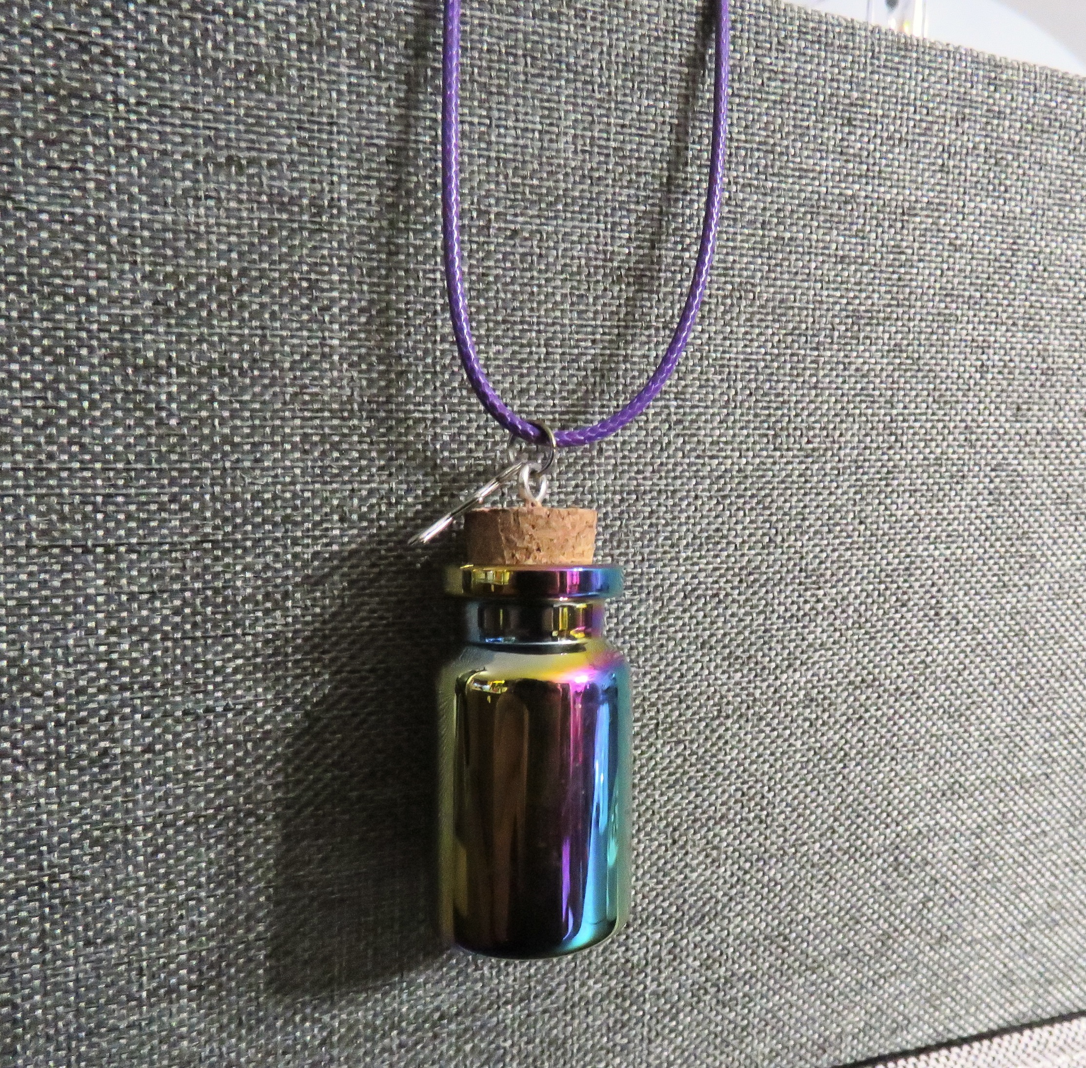 Multicolor Corked Bottle Star Charm Necklace (purple silver clasp string)