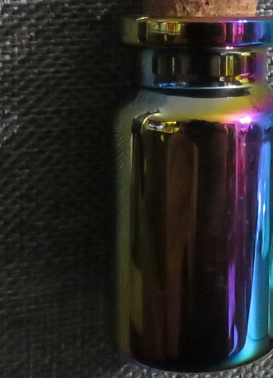 glass bottle, please do not give to children, bottle/cork is not glued shut, can be on request.