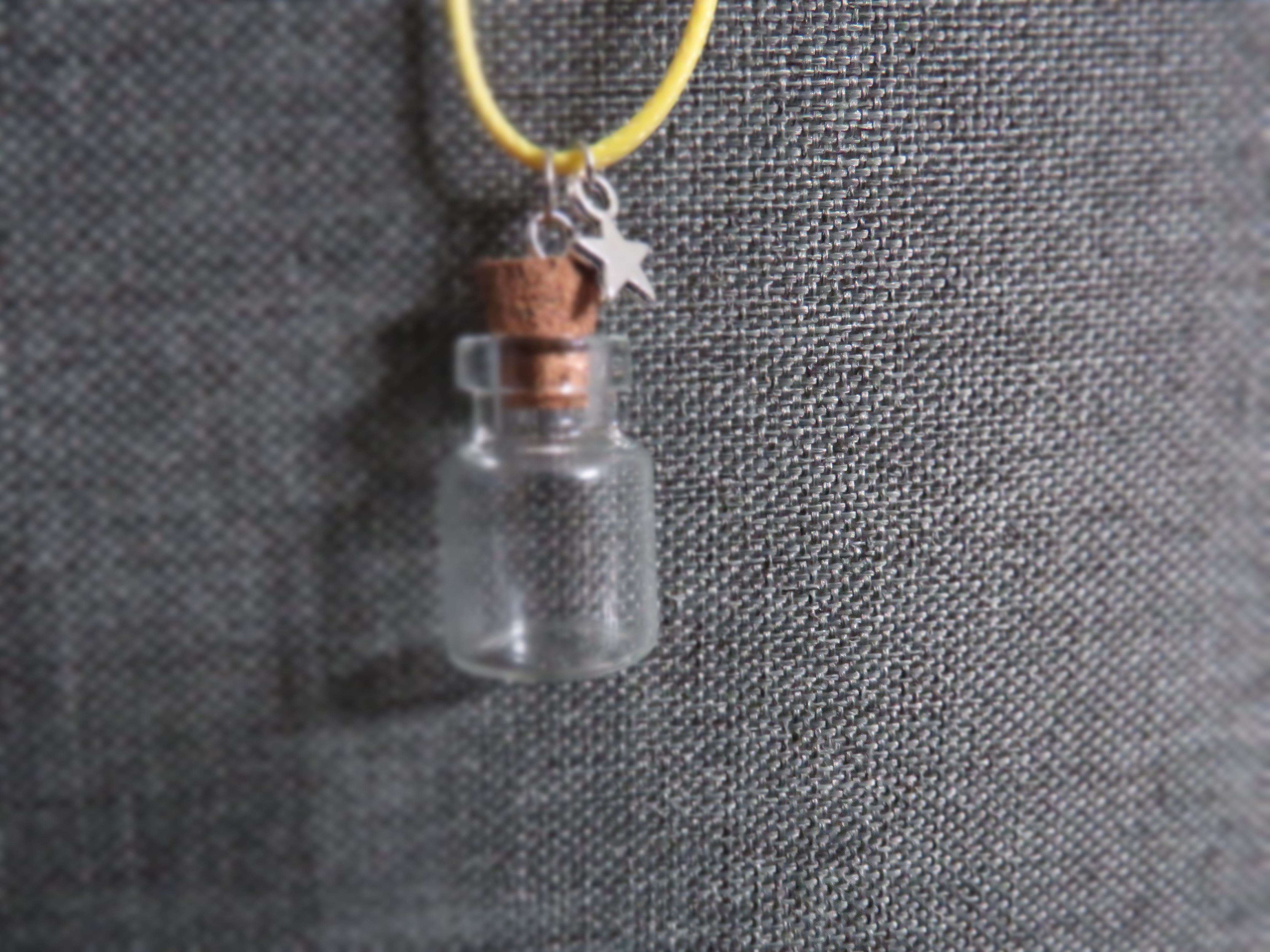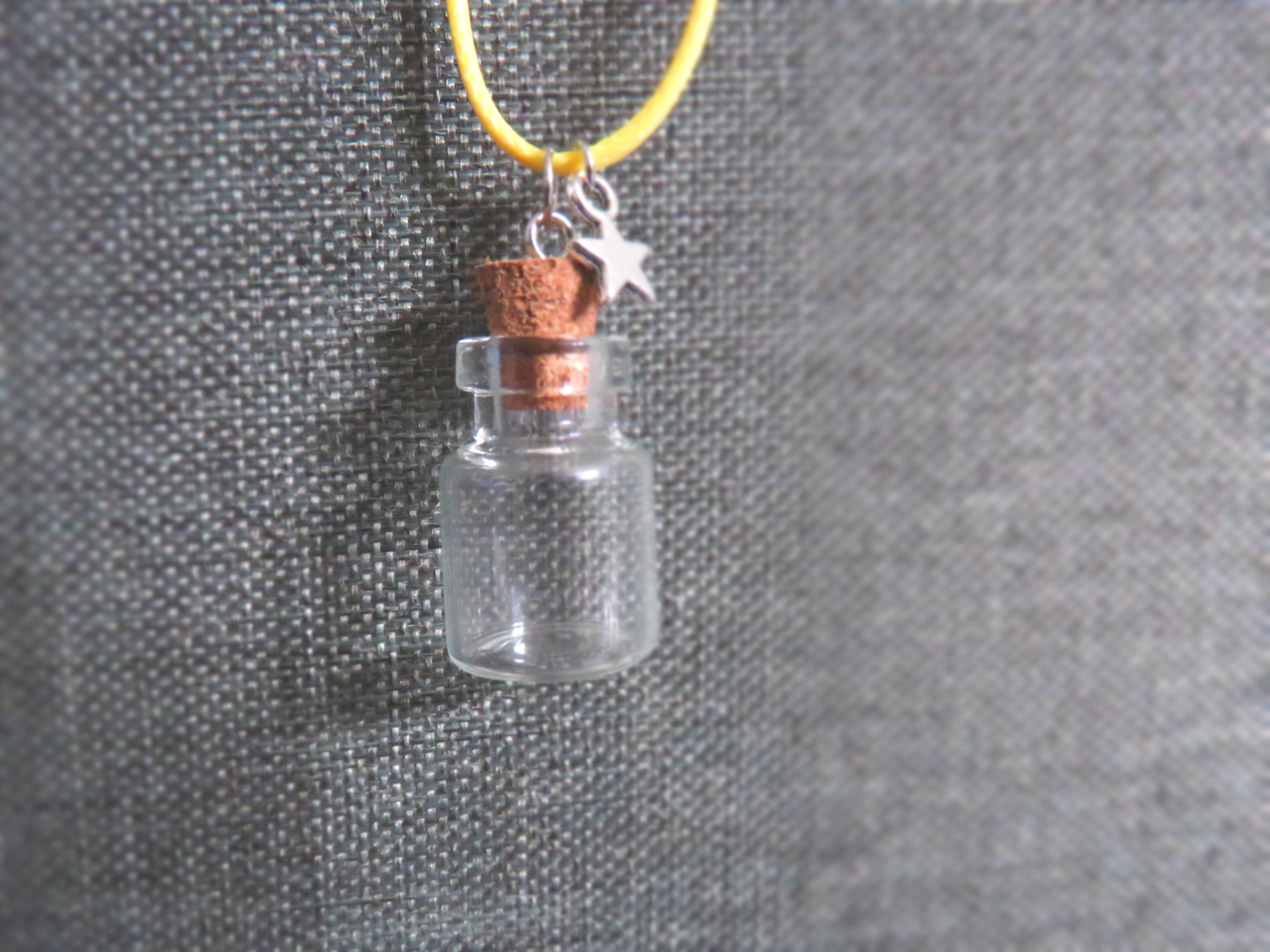 Extra Small Corked Bottle Silver Star Charm Necklace silver clasp yellow string